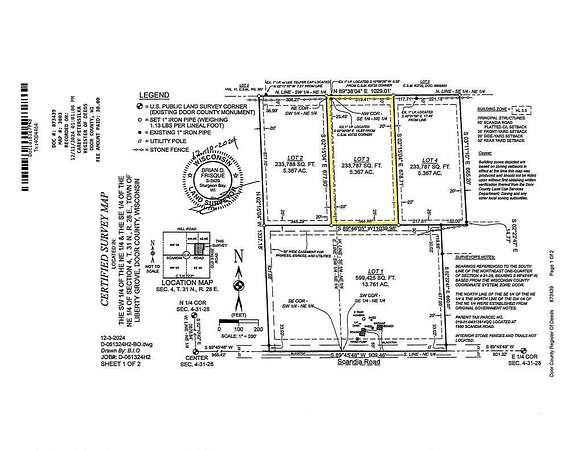 Est $2,404/moCreate your perfect Door County retreat on this 5.367-acre wooded lot-an ideal canvas for your dream home or private getaway. A gravel drive is already in place, and a full survey has been completed, saving you time and effort. Enjoy the tranquility of a secluded setting while being just minutes from all the dining, shopping, and shorefront charm Sister Bay has to offer.