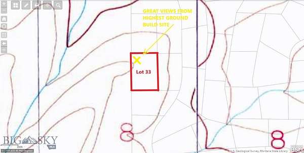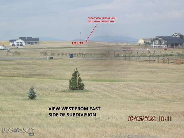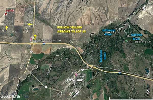 Visit this 3-acre Lot 33 for an EXQUISITELY PEACEFUL RURAL SETTING to build your dream home on amongst other quality homes; for end of cul-de-sac privacy along west boundary of subdivision backing up to a ranch; & for elevated views of surrounding mountains & rivers. City of Three Forks at the headwaters of the Missouri River is only 10 min away. Great location for the outdoor recreationist who likes to fly fish on 3 blue ribbon trout rivers, who likes to hunt deer or antelope or observe moose or just enjoy mother nature at her best. 4,360' elevation means low snow accumulation. 25 min from international airport via I-90. 40 min from Canyon Ferry Reservoir walleye fishing. $260/yr property tax. Well on Lot 34 to south = 128' deep, 27 gpm. Buyer to install septic system. OWNER FINANCING minimum 20% down, 7% interest, $600/mo approx payment, payoff within 5 years. Last 2 visuals show how to drive there. Google Earth highest ground build site w/GREAT VIEWS @ 45.94202,-111.62861 degrees.