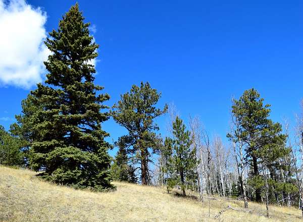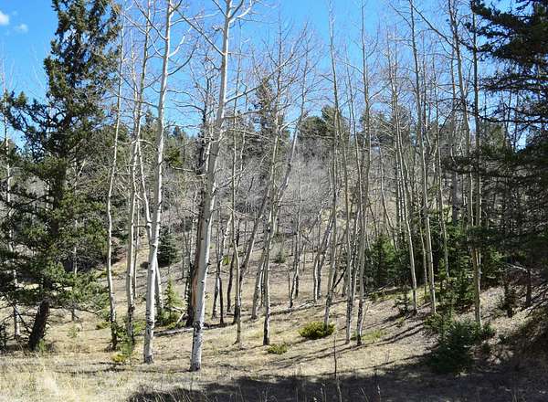 The foliage consists of a mix of mature ponderosa pines, large sections of aspen groves, and open meadow which creates both privacy and functionality. Portions of the land are already fully fenced, including a meadow well-suited for horses or livestock. Views of Pikes Peak add to the setting and the appeal. This property is well-positioned for a recreational retreat, basecamp, or future homesite, with immediate access to hiking, horseback riding, hunting, and water recreation nearby. Improvements include an unpermitted garage-style outbuilding, ideal for storage or workshop use. A water well (approx. 4 GPM) is installed with a pump that's supported by a small solar setup. No HOA or covenants! Located in El Paso County with convenient access to Woodland Park. No open access for drivebys, please contact listing agent directly to set up a showing.