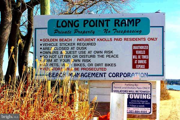 Est $178/moOver-sized mostly flat lot in the desirable water privileged community of Golden Beach. Community has access to Patuxent River with boat ramp, pier, beaches, picnic tables, grill and tot lot. Owner has not applied for perc however the neighboring lot perked so owner feels this lot should as well. Lot can possibly be used for boat storage or garage if not ready to build at this time.