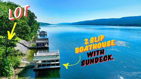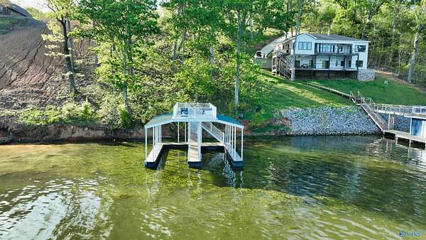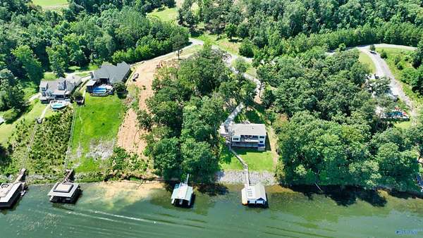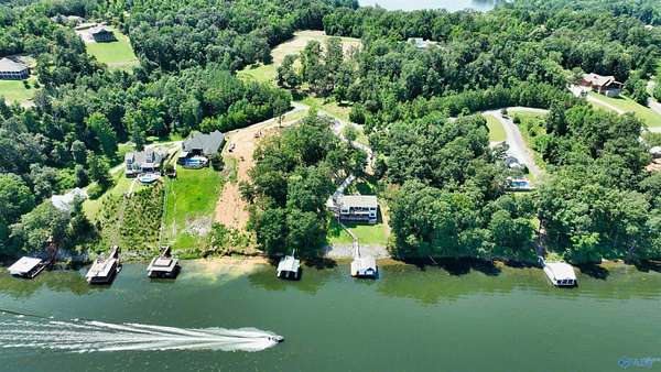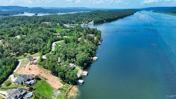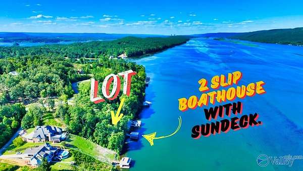 Discover a stunning Main Channel TN River waterfront lot in the private, gated community of The Promenade on Goosepond Island. This lot features a amazing view, two-slip boathouse with sundeck, and offers deep water access. The community has underground utilities, protective covenants, a clubhouse, marina, and private boat launch. With a minimum building requirement of 1800 sq.ft. and no time frame to start construction, it offers both flexibility and convenience. Located just 49 minutes from Huntsville and 34 minutes from Guntersville, it's the perfect spot for your dream home.