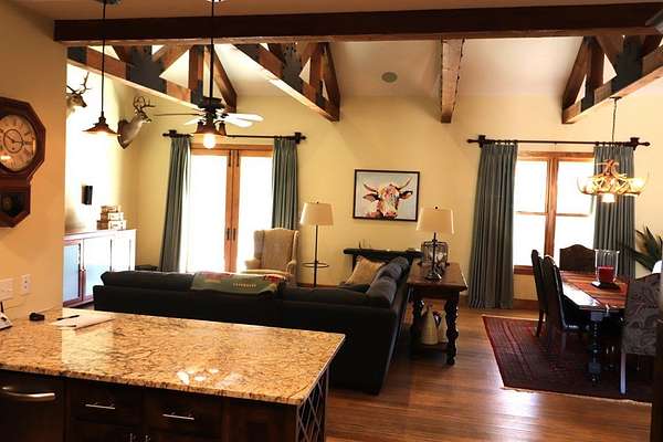 Located in south central Edwards County, TX.Easy drive less than 25 minutes from Rocksprings. The access off the highway is a very well-maintained county road for about 5 miles and quick easy drive off similarly maintained road for about a mile. Perfectly placed with views over Indian Creek is a custom built 2541sqft 3/2 home with 720 ft of front and back porches. House has hardie plank siding, custom stone skirt, metal seam roof, hardie plank wrapped posts with cedar bracing, bamboo flooring, tile baths, large walk in shower in master, cast iron tub, granite counter tops, custom knotty alder cabinets, stainless steel appliances, high ceiling in living area with solid pine beam trusses, custom modular closets, fiber optic internet service, cat 5 connections in all bedrooms, surround sound, Ir security cams, attic with drop down stairs. Licensed private water well with new well house to match dcor of house, licensed aerobic septic system, Electricity in place on 2 places. 3000sqft barn, with 12' peak, 6'' concrete slab, 14 ft roller door, covered porch, roughed in electricity and plumbing. Great terrain variation. Axis elk whitetail aoudad turkey dove fallow. Exempt taxes. #133