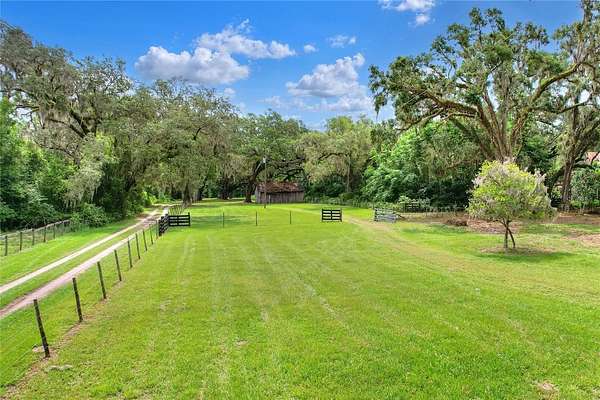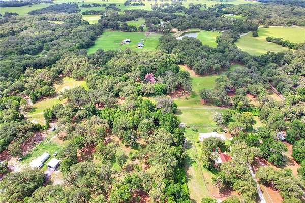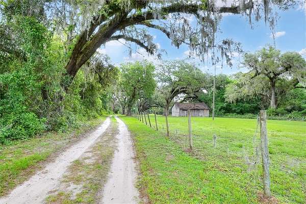Tucked beneath a cathedral of Grandfather Oaks in the heart of Bushnell, Wagon Wheel Ranch is more than land, it's a living, breathing canvas for your legacy. This 13.41 acre treasure blends the soul of old Florida with wide-open potential, inviting you to dream bigger, live deeper, and write your next chapter on your own terms. A winding, oak-canopied drive leads you through a uniquely C-shaped layout, designed by nature and perfect for creating multiple zones of living, working, or relaxing. The shape offers rare flexibility, from private retreats to multi-access functionality, allowing you to develop the land in ways most properties simply can't. At its heart sits a peaceful custom pond with a dock, perfect for sunrise reflections or sunset stillness. Wander further and you'll find a rustic early 1900s barn and charming utility outbuildings that echo stories of a simpler time. With power and water already on site, and multiple cleared, buildable areas, this property is ready for livestock, agriculture, a custom homestead or even an expansive family compound where you could build a true private oasis. 13.41 Acres, Fully Fenced & Livestock Ready;Zoned RR5C;Flood Zone X;Power & Water On Site;Multiple Homesite & Project Zones;16x20 and 20x20 Concrete-Floored Carports (2018) with Utilities;Historic 30x24 Barn (circa early 1900s);Peaceful Pond with Dock;No HOA. No Deed Restrictions. Just Freedom.