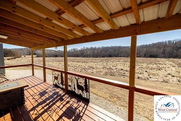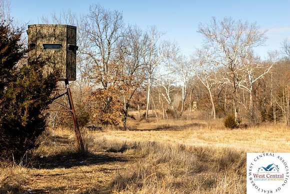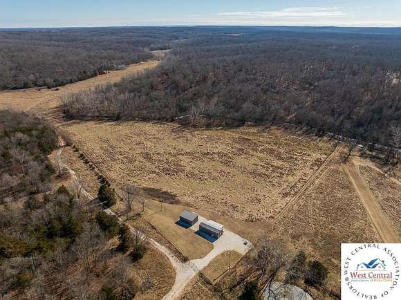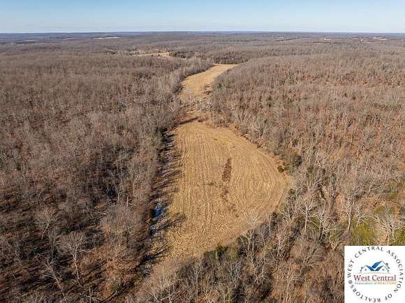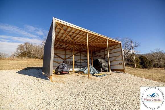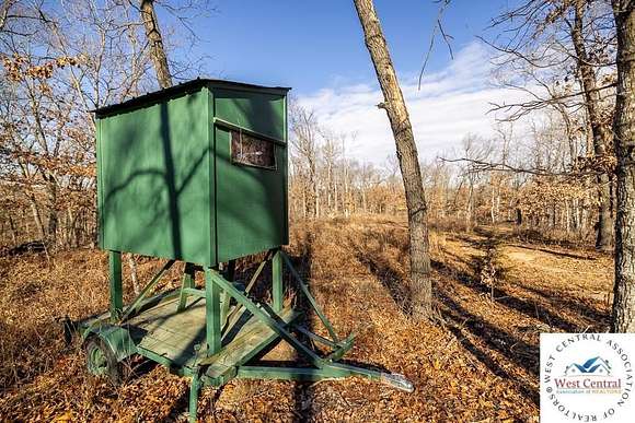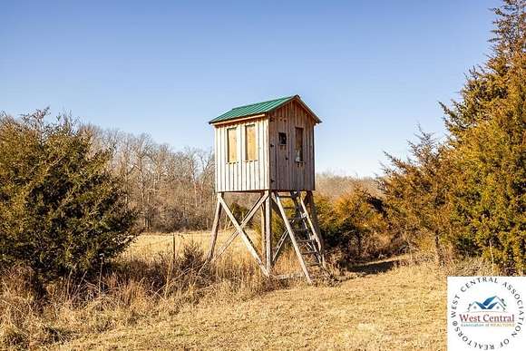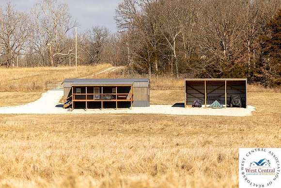 Just a short drive west of Collins Missouri on highway 54 and J lays a dream hunting escape. Proud to bring to the market 210 acres of a secluded and diverse whitetail and turkey hunting farm. Here you will find a 16X40 one bedroom cabin with all the utilities and amenities to stay as long as it takes to put that trophy buck or long beard in the bag. The metal shed is the perfect space for hanging that deer and storing your UTV and other tools. Hunters can find these deer and turkey in the hills lined with timber or in the grass pastures in the bottom ground. Whichever you choose to hunt there is a stand for either choice, tree or elevated box blinds. The trail system that encompasses the hills and valleys make it accessible to move against the wind whether you are walking or ebiking or even using your UTV. This farm is mostly fenced and has an additional recorded entrance for ease of access. Don't forget the rock bottom wet weather creek that serpentines through the bottoms of the farm that keeps wildlife watered as well. This is a must see hunting tract