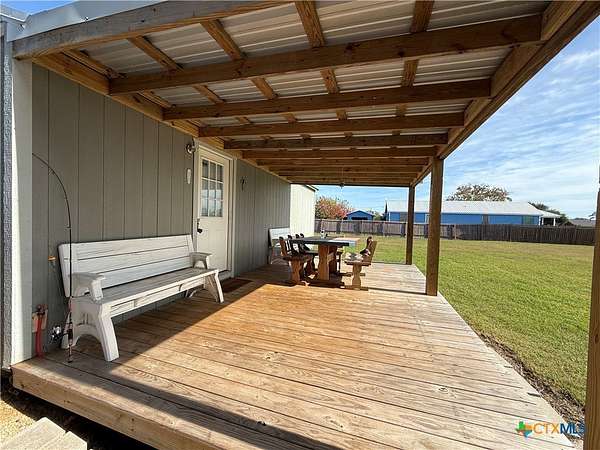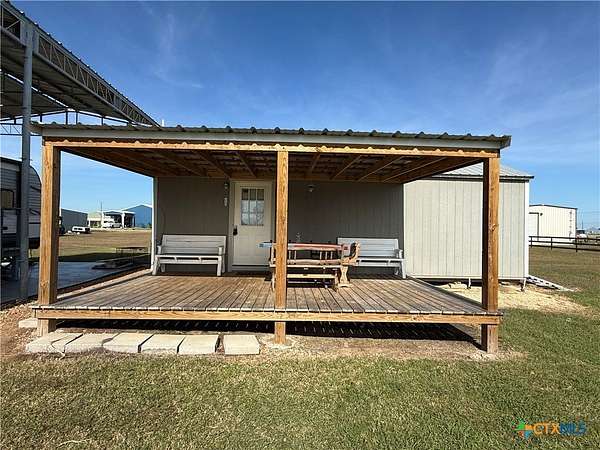 This unique coastal property in Seadrift, Texas, sits on five improved lots totaling approximately 0.41 acres and now features a recent price reduction along with the added value of an included RV. Designed for RV enthusiasts, weekenders, and fishing fans, the property has been raised and improved with dirt and gravel and includes an oversized RV cover with multiple RV hookups, along with a dual-gated driveway that makes access easy for RVs, boats, and larger vehicles. The converted outbuilding offers a comfortable cabin-style space with a covered front porch, built-in bunk beds, a bathroom with a shower, and a mini-split system for heating and cooling, and the cabin will remain furnished. The seller has also upgraded the washer and dryer area located behind the roll-up door on the opposite side of the outbuilding, which includes water hookups and additional storage space for lawn equipment and gear. Whether you are looking for a coastal weekend retreat or a convenient base for your fishing and outdoor adventures, this property is fully equipped and ready to enjoy from day one. The RV on-site is now included with the sale.