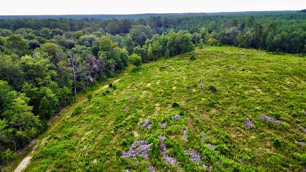 The topography on features 60' of elevation change, transitioning from wooded high ground to sandy creek frontage. Double Branch Creek is a clear, sandy-bottom stream teeming with native flora and fauna, offering not only a scenic border but also a vital water source for wildlife. The tract offers a thoughtful blend of open and timbered areas, with well-cut roads and trails, allowing access throughout the property by truck or ATV.