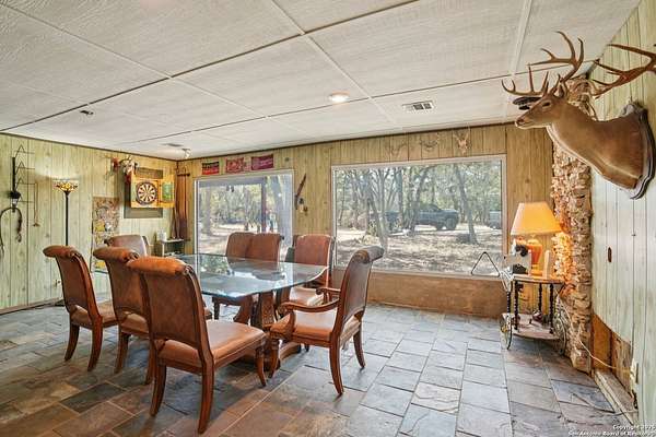 Welcome to 3001 Curry Rd - A Private 80-Acre Ranch Retreat in Seguin, TX. Experience the best of Texas Hill Country living on this unrestricted 80-acre ranch-a rare and versatile property perfect for horses, cattle, hunting, recreation, or simply enjoying the peace and privacy of country life. Currently under a wildlife exemption, this ranch offers a unique blend of natural beauty, modern infrastructure, and long-term value. The heart of the property is a spacious 3,500 sq ft primary residence featuring 4 bedrooms and 3 bathrooms. Originally built in 1972, the home was extensively renovated and expanded in 2019, including a new slab, metal roof, HVAC system, and water softener. The layout includes 30 ft ceilings with large open-concept living and entertaining areas, ideal for hosting family, friends, or simply relaxing while taking in the incredible views, abundant wildlife, and Texas sunsets. A hidden basement concealed behind a bookshelf offers the perfect gun room, safe room, or additional storage space. This property is also great for generational living, with a detached 800 sq ft guest house/casita that's perfect for extended family, visitors, or use as a hunting lodge. Additional features include: Two private water wells, fully paid off solar panels, an 1,800 sq ft workshop with three oversized RV doors and Big Ass Fans, a storage barn for feed, equipment, or tack, a two-stall horse stable and corral, chicken coop, one-acre irrigated orchard, 3-acre fenced and cross-fenced pasture for livestock with irrigation attachment, two ponds, and two hunting blinds. A tractor and all attachments will convey with the sale, providing everything you need to manage and enjoy the land from day one.Even more valuable, 100% of the seller's owned mineral rights and water rights will convey, ensuring long-term opportunity and security for future generations. Whether you're looking for a working ranch, recreational retreat, or a multi-family compound, 3001 Curry Rd offers a rare chance to own a legacy property with unmatched versatility and comfort. Call today to schedule your private tour of this exceptional ranch!