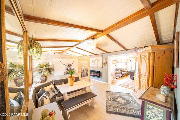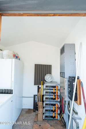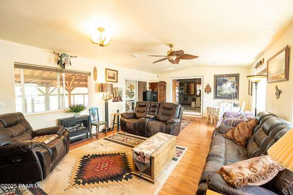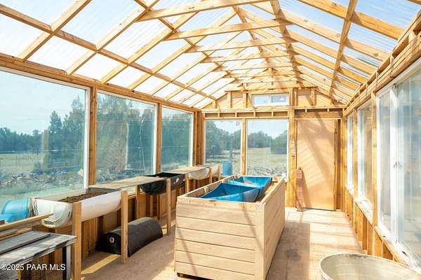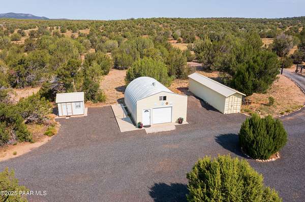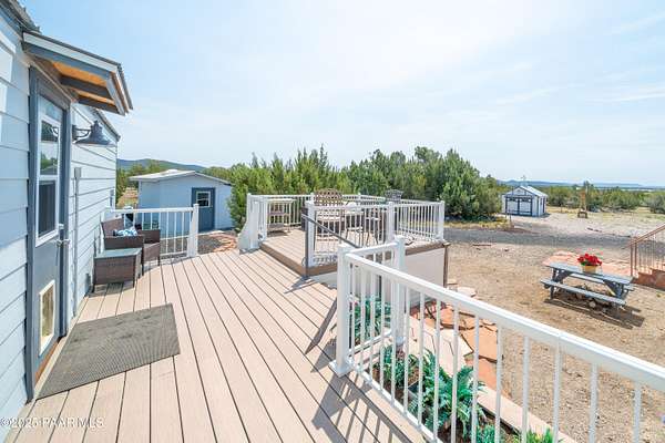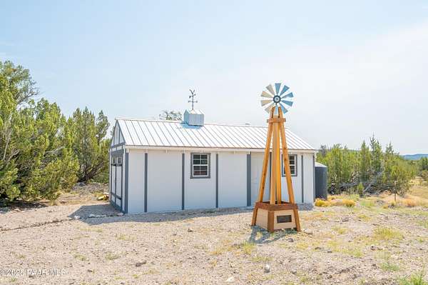 This turn-key, off-grid homestead offers 37.55 acres of peaceful, self-sufficient living in Sierra Verde Ranch, located within the scenic Double O Ranch near Seligman, Arizona. With panoramic views of Mt. Hope and the Cross Mountain Range, you'll enjoy quiet privacy, frequent wildlife and open-range cattle sightings, and access via county- and POA-maintained roads. The home is a well-maintained manufactured home with a fully built-on Arizona room, offering approximately 1,700-1,800 square feet of living space. Inside are two master bedrooms, a third bedroom or office, and two and a half bathrooms. The large living area is open and welcoming, and the bright kitchen area features a breakfast nook, granite countertops, big island, and plenty of space for gathering. There's also a walk-in pantry, laundry room, and fully-screened Arizona room, adding extra living and entertainment space.The property is entirely off-grid, powered by a 48-volt solar system with brand-new lithium-ion batteries and back-up generator--with the only utility bill, being propane delivery. Two Rinnai tankless propane on-demand water heaters are located on each side of the house. Water is supplied through a 4,000-gallon monthly POA allowance and over 8,000 gallons of on-site storage. A trailer and 300 gallon water tank for hauling are included. The sale also includes a state-of-the-art LG refrigerator, Maytag washer and dryer, a large flat-screen TV with entertainment center, an armoire, a deep freezer, and a second refrigerator located in the Arizona room. All buildings have been freshly painted in matching colors for a clean, unified appearance.The land is improved with a large operational greenhouse, a 40-foot high-cube conex box with a pitched roof, a Quonset hut garage/ workshop, inverter battery shed, small storage shed, and a 15x25 workshop. A unique hidden-entry 30x16x9 underground BUNKER doubles as a secure root-cellar and contains a 550-gallon backup water tank and up-flush toilet. Outdoor living is elevated by a composite moisture-shield deck, gravel driveway, gated front entry, and 3 acres of fully fenced space. Currently, the entire property is fenced on three sides and borders state land with open grazing access for the Double O Ranch cows. This is a non-smoking, well-cared-for home ideal for those seeking off-grid living with modern comforts. Furniture, a Polaris Ranger, an additional trailer, and a tractor are all negotiable with the sale.