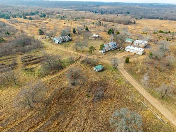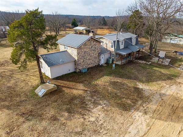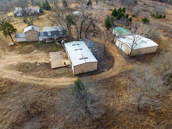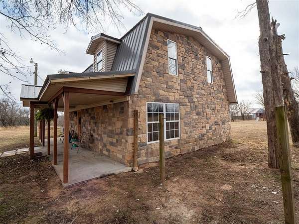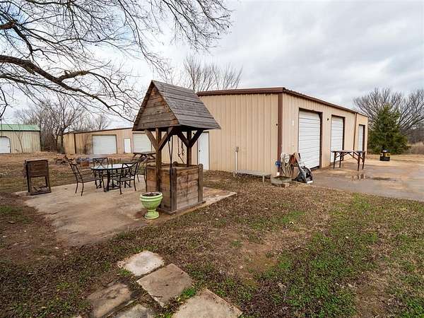 Welcome to "Diana's Hill," a hidden gem in central Oklahoma just 7 miles from I-40 (Exit 200). Enjoy an ideal location-approximately 1 hour to Oklahoma City, 1 hour 20 minutes to Tulsa, and an easy 3.5-hour drive to Dallas, TX. This beautiful 80-acre property offers the perfect balance of convenience and peaceful country living. The land features two stocked ponds, a scenic seasonal creek, and abundant wildlife including trophy whitetail deer, turkey, and for the fishermen lots of bass, crappie, and perch. Hummingbirds return each year by the dozens. This creates a truly special setting for hunters, fishermen, wildlife watchers, and stargazers. Approximately half of the acreage is open, providing a versatile mix of pasture and cover. Improvements include three shops with concrete floors and overhead doors: a 2,400 sq ft shop, a 1,800 sq ft shop, and an 800 sq ft shop. Also included are a large concreted implement carport and a concreted pole barn with lean-tos-ideal for equipment, hay storage, hobbies, or business use. No zoning and no permits required. The spacious home approximately 3,034 sq ft features a large covered front porch with expansive views and no visible neighbors. The main-level primary suite includes an en-suite bath, while four additional bedrooms and a full bath upstairs provide ample space for family or guests. In total, the home offers five bedrooms, three full bathrooms, and two living areas. Enjoy a warm living area, an efficient kitchen with an oversized built-in refrigerator and freezer, and storage throughout. A dedicated office ideal for working from home or homeschooling. Sought-after country school, Strother. High-speed fiber-optic, propane, dual-zoned CH&A, fireplace, rural water, and water well in need of repair. Give us a call, there is so much more to see and talk about