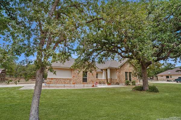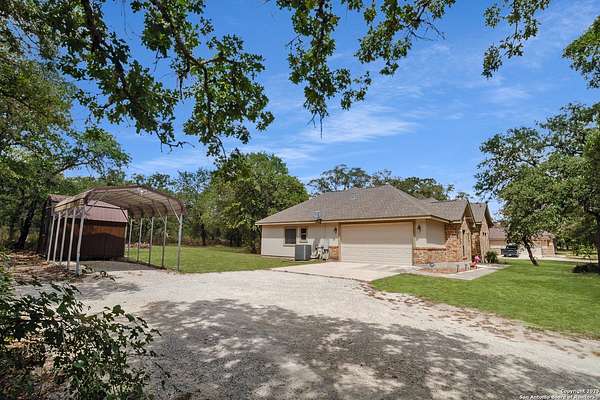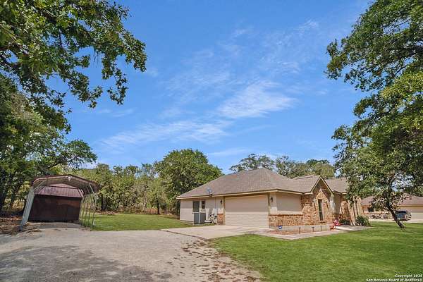 This property is currently being offered in three ways: Lot 26 and Lot 27 together for a total of 2.8 acres 205 Sendera Crossing, Lot 26 only, or Lot 27 only (which contains the home). The seller is offering a reduced price if both lots are purchased together, providing a fantastic opportunity for extra space and long-term value. Welcome to your private slice of country living! Located in the peaceful Sendera Crossing neighborhood-a quiet, one-way-in, one-way-out subdivision known for its privacy and charm-this one-owner 4-bedroom, 2-bathroom home has been lovingly maintained and sits on a total of 2.8 acres filled with mature trees and tranquil shade. You will live within an established and friendly subdivision with no HOA and a prime location along a quiet road. The amenities of La Vernia are all within easy reach, and you're less than 45 minutes from the bustling center of San Antonio. Inside, you'll find durable tile flooring throughout the main areas and new flooring in the primary suite (2024). The spacious primary bedroom also features a serene ensuite bath with a deep soaking tub and separate walk-in shower-ideal for relaxing at the end of the day. The secondary bathroom also includes a bidet for added convenience. At the heart of the home, the kitchen showcases custom oak cabinetry, granite countertops, and ample prep space. The open-concept layout seamlessly connects to the living and dining areas, making it perfect for entertaining or everyday living. Step outside and enjoy the expanded concrete front and back porches, perfect for morning coffee or evening gatherings. Additional outdoor highlights include a 12x11 shed for storage or hobbies built in 2024, a two-car garage with a new WiFi-enabled opener and interior camera (2024), and a carport for extra covered parking. In the backyard, you'll also find a concrete slab-perfect for a future workshop, additional storage building, RV pad, or other projects. Schedule your private tour today and come see everything this beautiful property has to offer!