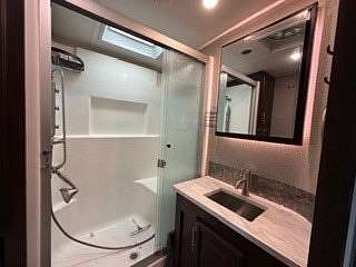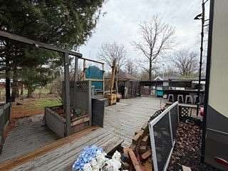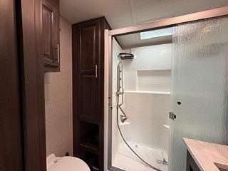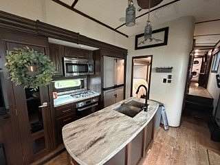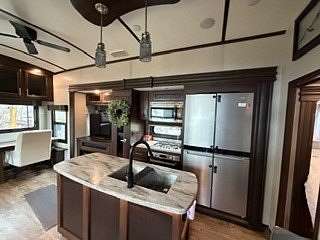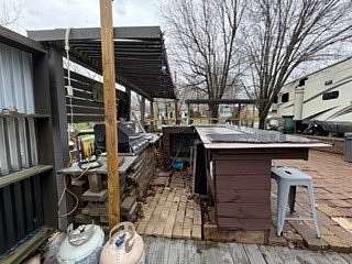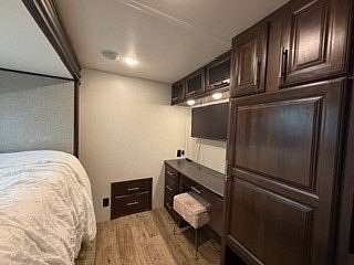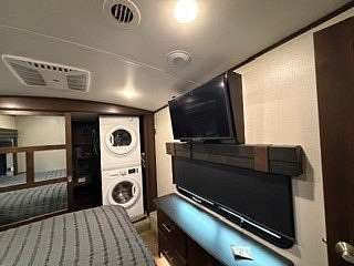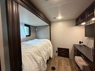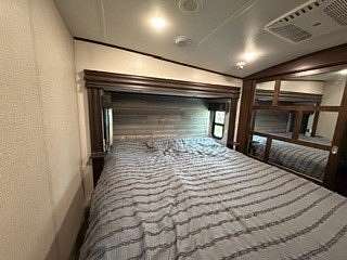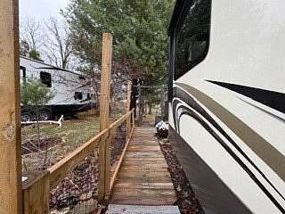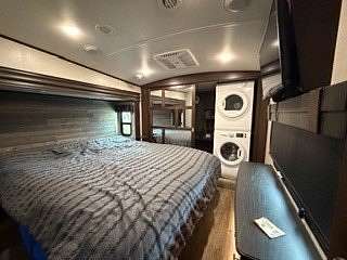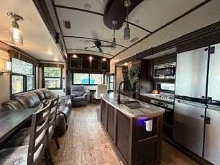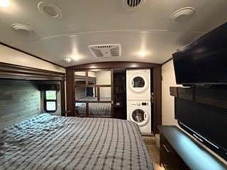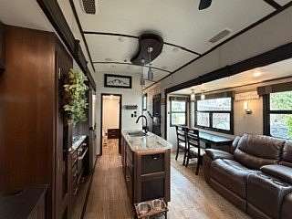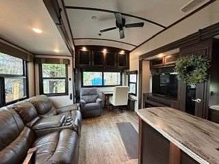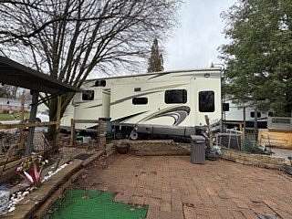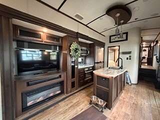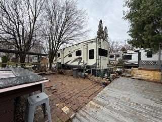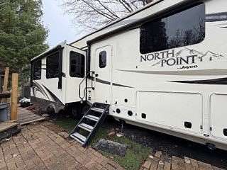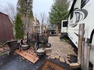 Lot 1211 at Woodsmoke Ranch offers the perfect blend of comfort, functionality, and outdoor living with a 2020 North Point by Jayco 5th wheel trailer featuring 4 slide-outs for an incredibly spacious feel. This well-appointed unit includes a primary bedroom plus a versatile bunk room/office, loft, a large open living area with an electric fireplace, and a beautifully designed kitchen with an island sink, new refrigerator, and all appliances included. Smart TVs throughout the unit-including a 75-inch TV in the screen room-will stay, along with all furnishings, making this a true turnkey opportunity. Additional interior features include washer and dryer conveniently located in the bedroom closet, dual A/C, and in-floor heat for extended seasonal comfort. Step outside to enjoy a thoughtfully designed lot complete with a paved and brick paver driveway, outdoor kitchen, screen room, back deck, fire-pit, fireplace, and storage shed-perfect for entertaining or relaxing in your own private retreat. Category 3 lot with yearly dues of $2,015.79, which includes water, electric, garbage, and access to all Woodsmoke Ranch amenities. Woodsmoke Ranch amenities: 2 pools, 2 stocked fishing ponds, 3 pavilions, basketball courts, sand volleyball, gaga ball, bags, 2 playgrounds, RC car racetrack, baseball field, laundromat, convenience store, cafe, horse stables (for rent), adult lounge, Mygrain Saloon, events planned year long and so much more. RV campground community, cannot be a primary residence. Gated community; showings by appointment only. No access without an appointment.