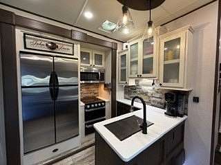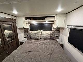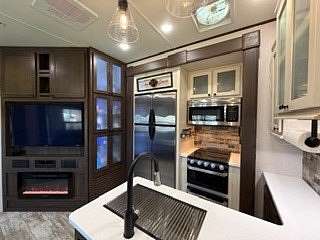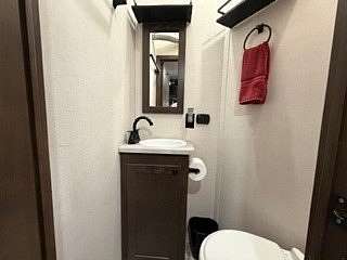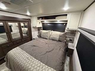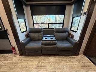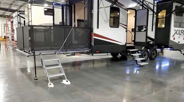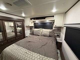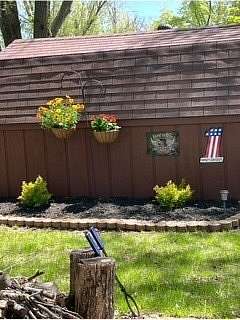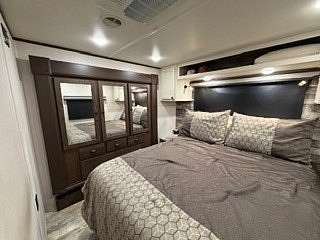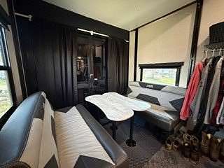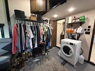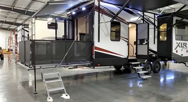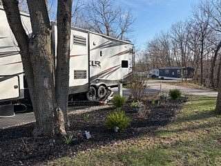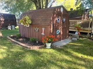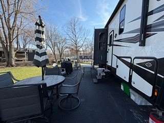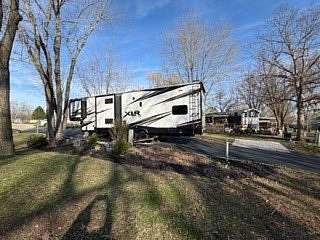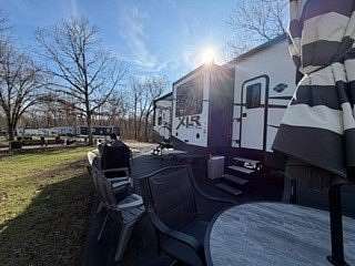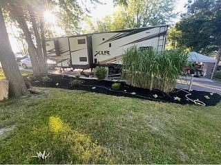 Lot 376 is an absolutely stunning corner lot in Woodsmoke Ranch offering a rare combination of convenience, functionality, and upgraded living! This beautifully landscaped property features a highly desirable horseshoe pull-through driveway, making it effortless to navigate with any size trailer, plus two built-in steel plates for secure and stable trailer jack placement. The lot is enhanced with thoughtfully designed landscaping, vibrant flowers, and ambient lighting throughout, creating the perfect outdoor setting day or night. A storage shed with a newer roof provides ample space for tools and equipment. Situated on the lot is a 2020 XLR Toy Hauler 5th Wheel measuring approximately 40 feet in length, designed to comfortably sleep up to 9 and equipped with a self-leveling system for easy setup. The front primary bedroom offers a queen bed with generous closet space and additional storage beneath. A full bathroom includes a spacious shower, while the kitchen is equipped with an abundance of cabinetry, large refrigerator/freezer, microwave, and cooktop/oven. The living area features a full-size reclining sofa and electric fireplace, creating a cozy yet functional gathering space. The rear of the trailer is exceptionally versatile-currently utilized as a closet and lounge area, but easily convertible-with a half bath, washer/dryer combo, seating area with table, additional queen drop-down bed, and loft space for extra sleeping or storage. This toy hauler is fully equipped for your recreational needs, featuring a built-in gas pump for your toys and an additional fuel tank dedicated for the generator. Glass sliding doors lead directly to a fantastic 3-seasons room that also functions as a deck, seamlessly blending indoor and outdoor living. This property is truly turnkey-everything stays, including all furniture, kitchenware, appliances, smoker grill, lawn equipment, patio furniture, TVs, cameras, linens, water filtration system, water softener, whole house vacuum system, and even a Cummins gas generator (approx. $5,000 upgrade). Category 1 lot with low annual dues of $1,649.10, which includes water, electric, garbage, and access to all Woodsmoke Ranch amenities. Woodsmoke Ranch amenities: 2 pools, 2 stocked fishing ponds, 3 pavilions, basketball courts, sand volleyball, gaga ball, bags, 2 playgrounds, RC car racetrack, baseball field, laundromat, convenience store, cafe, horse stables (for rent), adult lounge, Mygrain Saloon, events planned year long and so much more. RV campground community, cannot be a primary residence. Gated community; showings by appointment only. No access without an appointment.