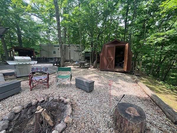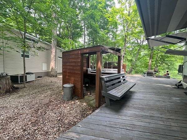 Welcome to Lot 773 in the gated oasis of Woodsmoke Ranch in Seneca, IL - a truly one-of-a-kind setting perched high above a tranquil ravine. Hear the gentle rush of water below as you unwind on an expansive 50-foot deck, complete with a built-in bar, wraparound seating, and fire pit-ideal for entertaining or peaceful evenings under the stars. Added in 2021, the new shed offers convenient storage. Whether you're enjoying the quiet seclusion, the view of the ravine, or the incredible amenities Woodsmoke Ranch has to offer, Lot 773 is a rare opportunity you won't want to miss! This is a category 6 lot with yearly dues of 3010.41 which includes water, electric, garbage and park amenities. Woodsmoke Ranch amenities: 2 pools, 2 stocked fishing ponds, 3 pavilions, basketball courts, sand volleyball, gaga ball, bags, 2 playgrounds, RC car racetrack, baseball field, laundromat, convenience store, cafe, horse stables (for rent), adult lounge, Mygrain Saloon, events planned year long and so much more. RV campground community, cannot be a primary residence. Gated community; showings by appointment only. No access without an appointment.