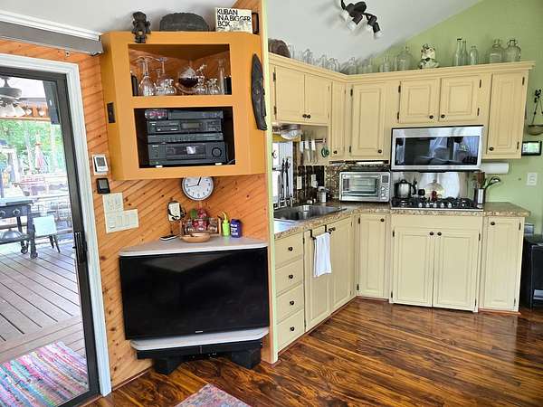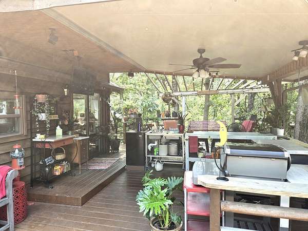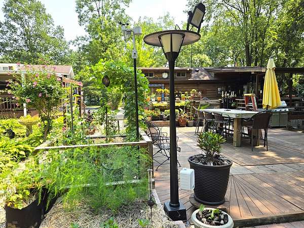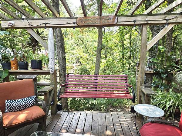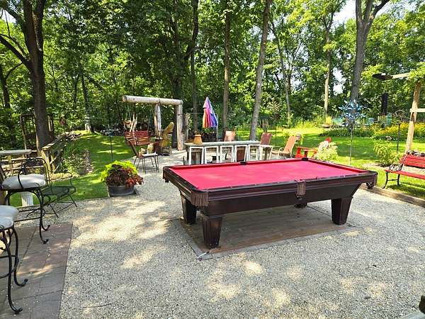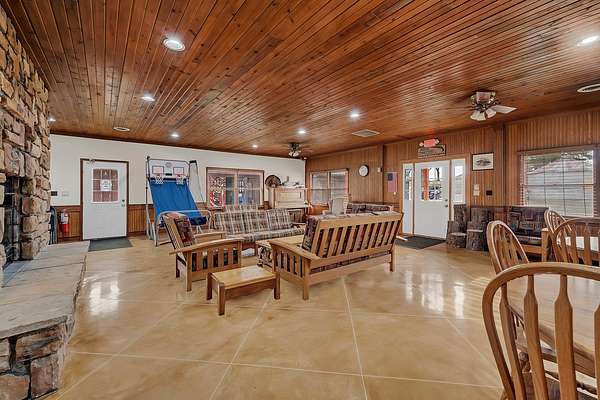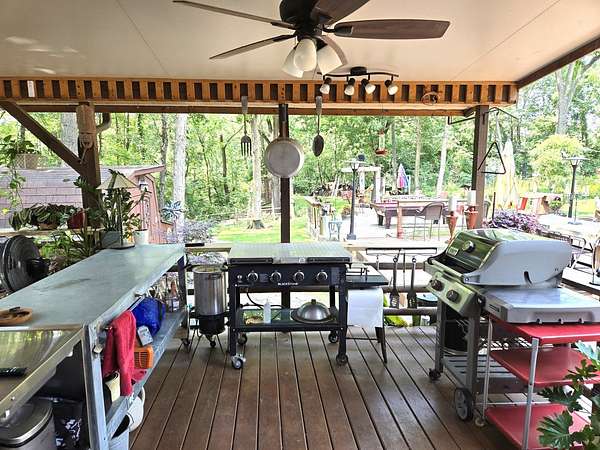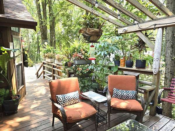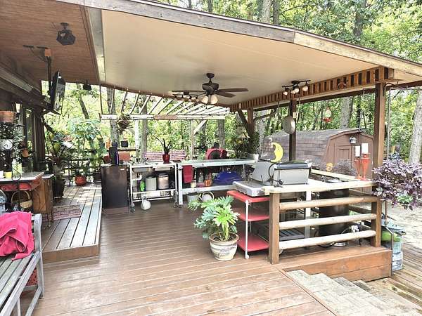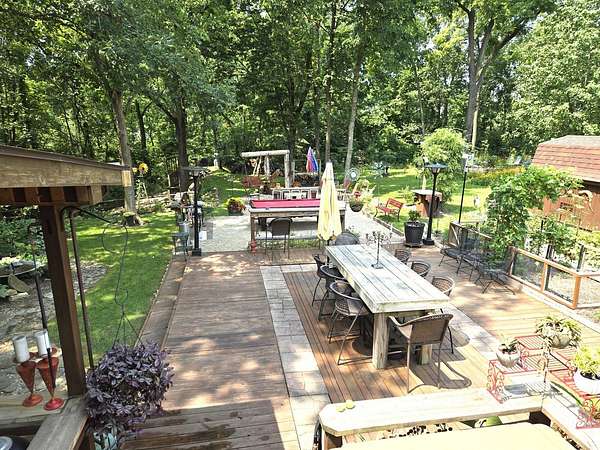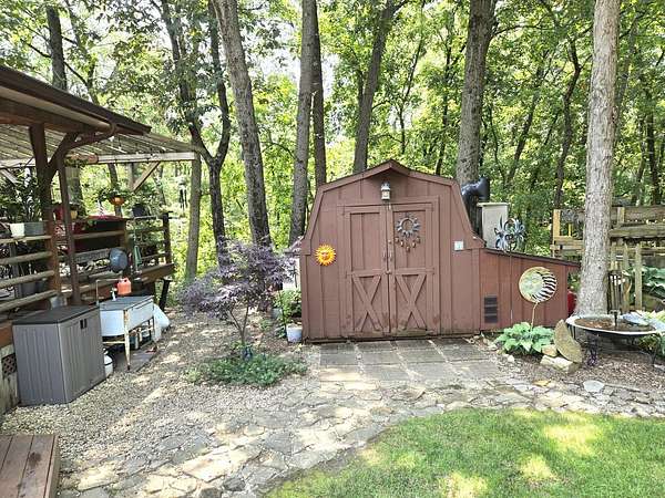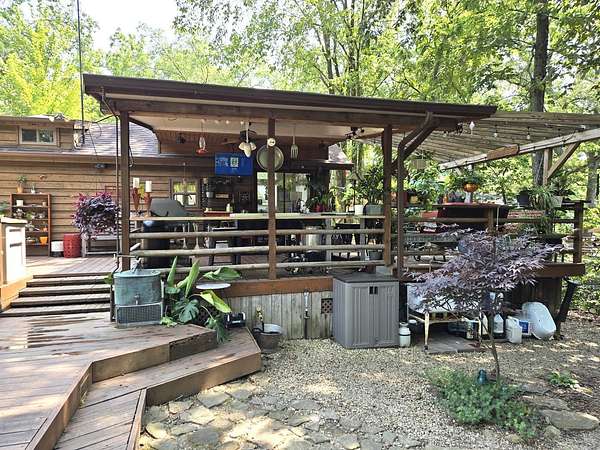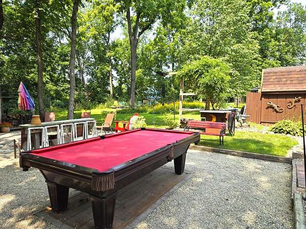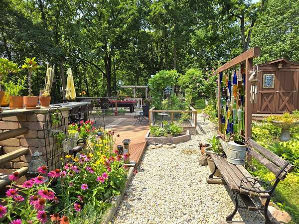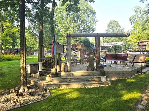 Welcome to Lot 1043 in the highly sought-after Woodsmoke Ranch in Seneca, IL-arguably one of the most unique and thoughtfully designed properties in the entire community. This is truly a one-of-a-kind lot that must be seen in person to fully appreciate the level of creativity, functionality, and detail the owner has engineered throughout. Featuring a 1999 Kropf Special Edition Series park model with cedar plank siding, this unit offers a primary bedroom with a loft above, full bathroom, kitchen, and comfortable living space, all enhanced by drywall finishes, laminate flooring, and quality upgrades throughout. The property is equipped for extended seasonal enjoyment with insulated and heat-taped water lines, a Simer water pressure system, dual filtration including a Waterdrop hot water filter, an interior ambient WiFi weather station control panel, a 250-gallon owned propane tank, and even a backup generator capable of powering the entire setup. Inside, you'll find high-end appliances including an Empava 5-burner cooktop, Samsung French door refrigerator, convection microwave, and additional freezer, along with a built-in sound system that connects indoor and outdoor entertainment spaces, multiple TVs, a hidden wall safe, and a full security system with battery backup. Step outside and the experience truly elevates-this lot was designed for entertaining and maximizing outdoor living. A fully covered and insulated 16x16 outdoor kitchen area features a Weber Genesis grill, Blackstone griddle, stainless prep station, sink with filtered water, refrigerator, and more, all directly connected to propane. A pergola-covered seating area with ambient lighting, custom-built dining table for eight, and multiple gathering spaces create the perfect setting for hosting. The backyard continues to impress with a raised vegetable garden, herb and fruit patches, multiple water access points, and expansive pea gravel and deck spaces throughout. For recreation, enjoy a Brunswick outdoor pool table under dedicated lighting, a beautifully designed fire pit area with seating for eight, and thoughtfully designed outdoor zones that make this property as functional as it is impressive. With parking for 5-7 vehicles and countless upgrades, Lot 1043 stands out as an extraordinary opportunity within Woodsmoke Ranch-offering a lifestyle experience that goes far beyond the typical. Category 4 lot with yearly dues of $2382.44 which includes water, electric, garbage and park amenities. Woodsmoke Ranch amenities: 2 pools, 2 stocked fishing ponds, 3 pavilions, basketball courts, sand volleyball, gaga ball, bags, 2 playgrounds, RC car racetrack, baseball field, laundromat, convenience store, cafe, horse stables (for rent), adult lounge, Mygrain Saloon, events planned year long and so much more. RV campground community, cannot be a primary residence. Gated community; showings by appointment only. No access without an appointment.