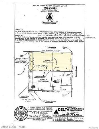 Est $296/moPrime Corner Lot in the Village of Goodrich! Build your dream home on this high and dry corner parcel offering an excellent building site. Sewer is available at the street, and a well is already installed - adding value and convenience. Enjoy a fantastic location within walking distance to schools, dining, the library, golf and local parks. Easy access to downtown amenities while nestled in a charming community setting. Don't miss this ready t build opportunity.