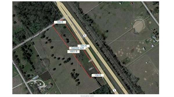 Discover a prime investment opportunity right off Highway 6 with high visibility south of Calvert, just outside of the city limits. Located on approximately 3.61 acres with nearly 1000 linear feet of highway frontage with depths varying from 158' to 180'. Existing concrete driveway is located on State Highway 6 and joins to an existing slab that was once a small grocery store/drive-in. The slab has an electrical pole/meter at the site. Secondary access/road frontage, approx. 180 off of Coopers Lane. The property is mostly open, electrical in the area, and less than two minutes from Calvert's 8-block historic business district on Main Street filled with retail and eateries. Located approximately halfway from Bryan/College Station and Waco, this spacious lot offers room for new construction and commercial venture given its high visibility and easy access from State Highway 6.