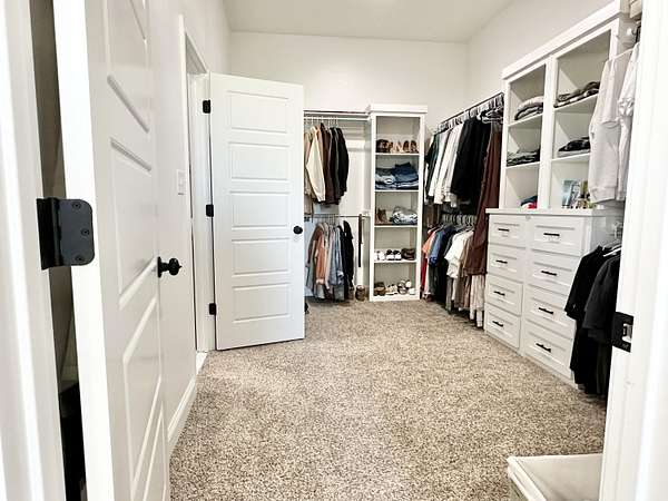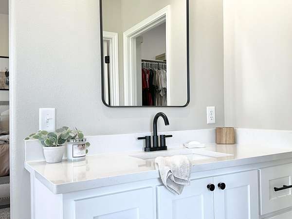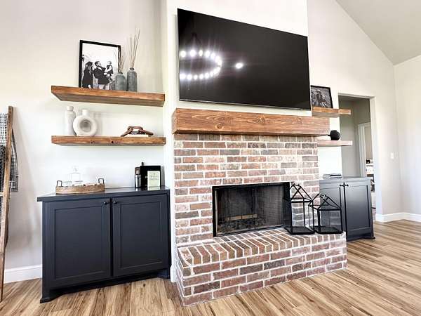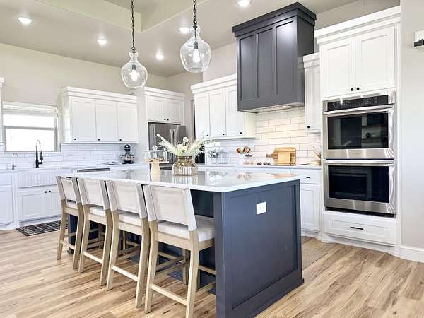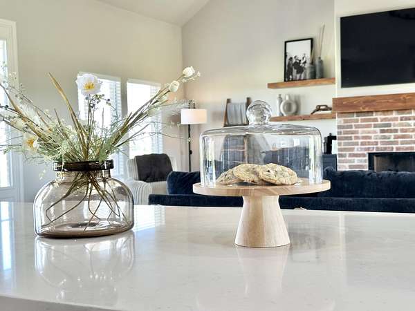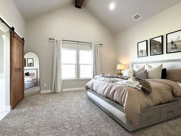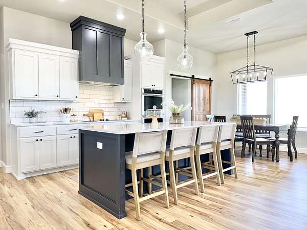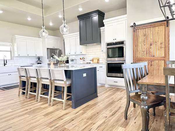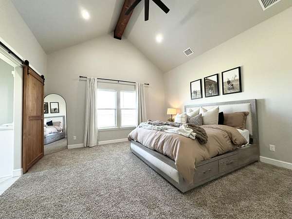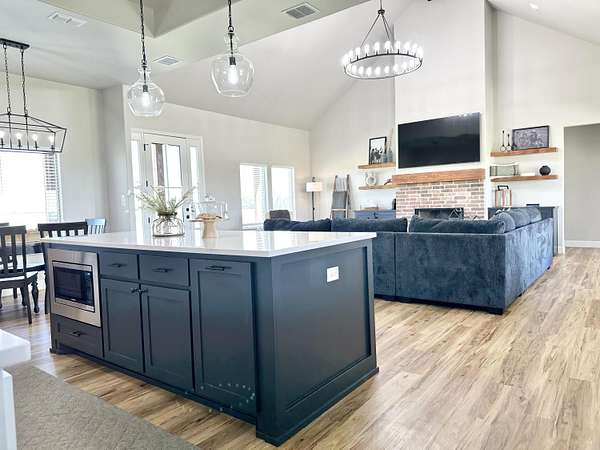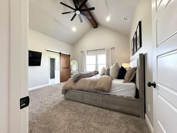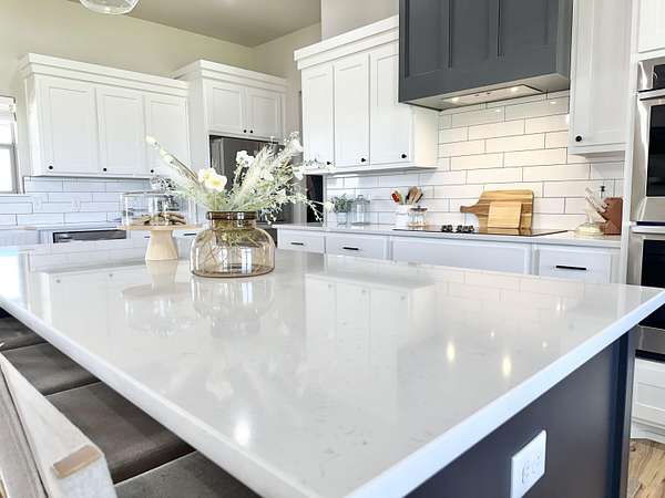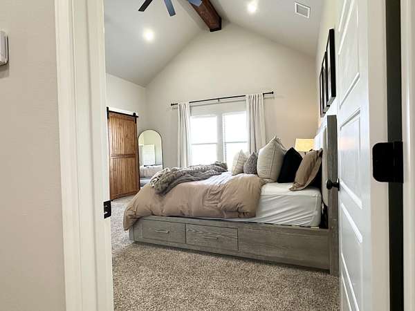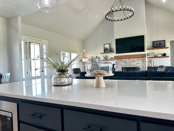 - Beamed Ceilings, Built-In Features, Cathedral Ceiling(s), Ceiling Fan(s), Chandelier, Double Vanity, Eat-In Kitchen, High Ceilings, Kitchen Island, Open Floorplan, Pantry, Quartz Counters, Recessed Lighting, Soaking Tub, Vaulted Ceiling(s), Walk-In Closet(s)