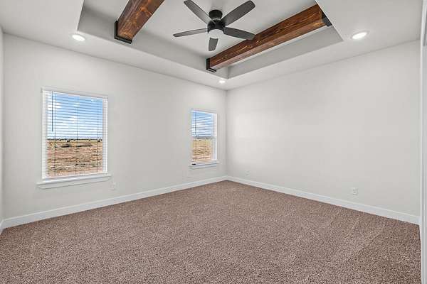 - Beamed Ceilings, Built-In Features, Cathedral Ceiling(s), Ceiling Fan(s), Chandelier, Double Vanity, High Ceilings, High Speed Internet, Kitchen Island, Open Floorplan, Pantry, Quartz Counters, Recessed Lighting, Soaking Tub, Walk-In Closet(s), Wired For Data