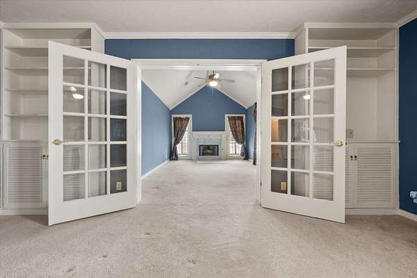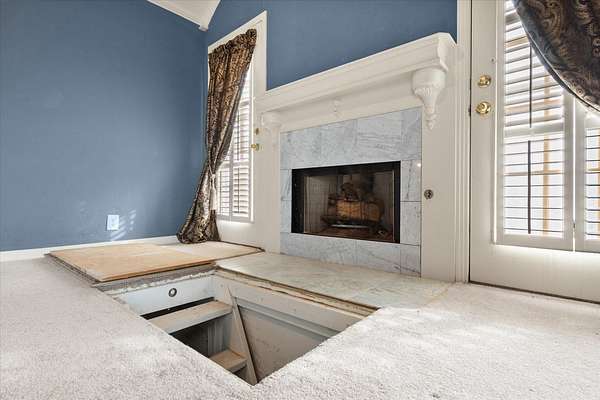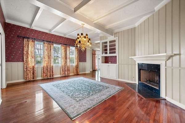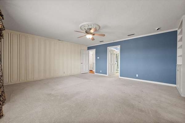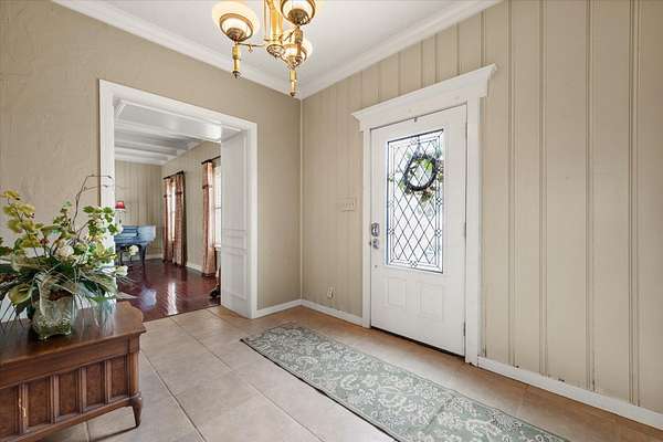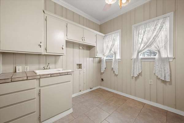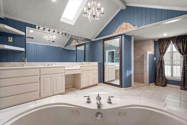 - Beamed Ceilings, Bookcases, Built-In Features, Cedar Closet(s), Ceiling Fan(s), Chandelier, Crown Molding, Cultured Marble Counters, Double Vanity, Entrance Foyer, Pantry, Soaking Tub, Synthetic Counters, Tile Counters, Walk-In Closet(s), Wood Counters