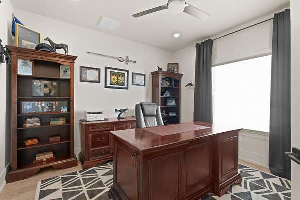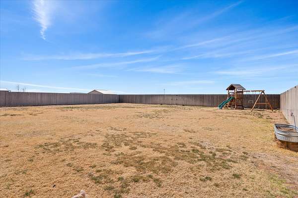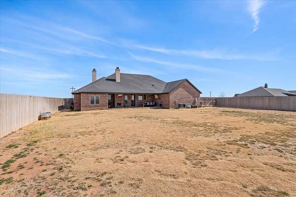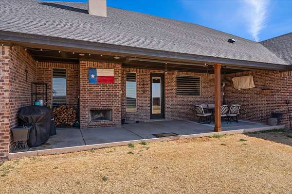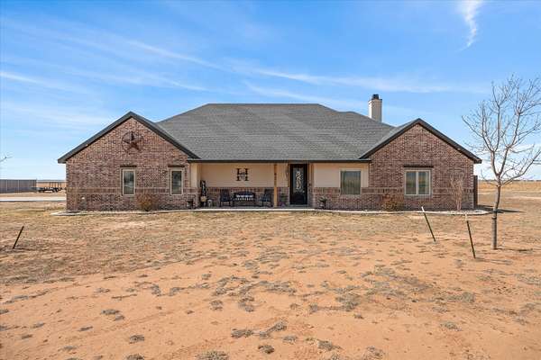 Beautiful Jerod Rister custom-built home completed in 2021, situated on 1.5 acres in Shallowater ISD offering added privacy and space. This home has been exceptionally well maintained and clearly shows pride of ownership. The kitchen features an open-concept design with an island and eating area, and a spacious pantry complete with cabinets and shelving for your organization dreams. This thoughtfully designed home features 3 bedrooms, a dedicated office, 3 full bathrooms, and a basement, providing plenty of flexible living space. The home showcases exceptional craftsmanship with custom cabinetry and impressive woodwork throughout. The living room features a beautiful, intricately designed ceiling that creates a stunning focal point, while large windows throughout the home provide abundant natural light, creating a warm and inviting atmosphere. The kitchen includes a designated space for a wine refrigerator beneath the wine cabinet, and the home offers vinyl flooring throughout the main areas with carpet in the bedrooms and basement. The spacious primary suite features a walk-in shower, relaxing soaker tub, and a large walk-in closet. Each bedroom has access to its own bathroom, offering privacy and convenience. One bedroom includes a bathroom connected directly to the bedroom, while another full bathroom located next to a bedroom is ideal for guests and is handicap accessible. The living area features a wood-burning fireplace, and the covered back porch offers a second wood-burning fireplace, perfect for relaxing or entertaining outdoors. Additional features include a water softener installed in 2024, instant hot water in the guest showers, and a full metal front door. The property also includes a 10' x 16' double-door storage shed, along with recently planted trees and crepe myrtles added within the past year. This home is all electric and serviced by a water well producing approximately 14 GPM and a septic system. The roof features 30-year shingles and was inspected after last spring's storm with no reported damage. The surround sound system upstairs and downstairs and basement media equipment will convey with the home.