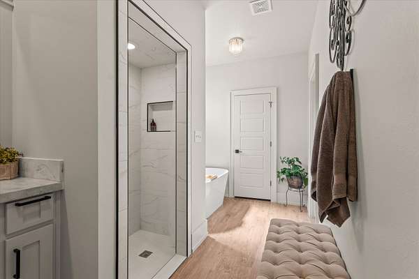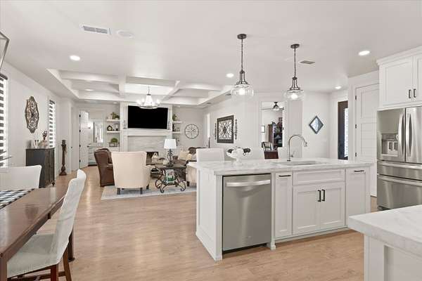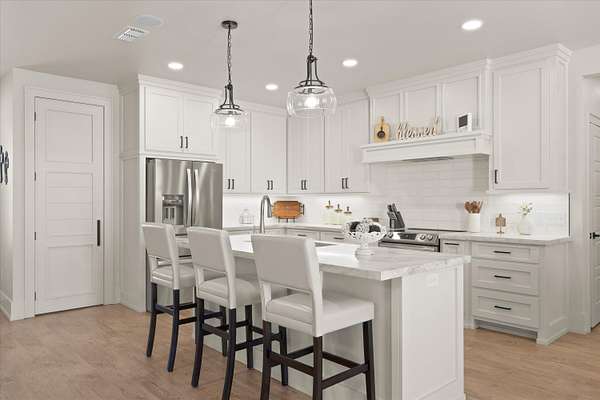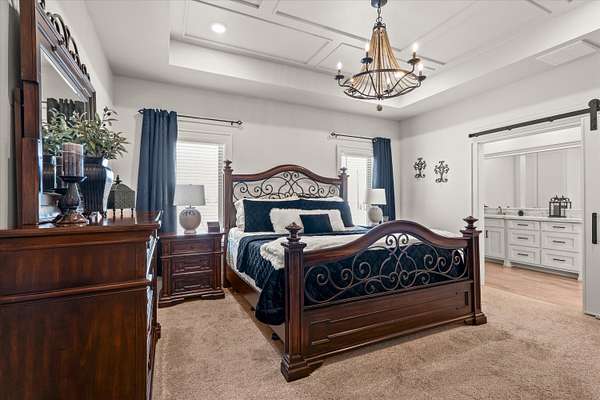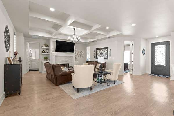 - Bar, Bookcases, Ceiling Fan(s), Chandelier, Concrete Counters, Crown Molding, Double Vanity, High Ceilings, Kitchen Island, Open Floorplan, Pantry, Recessed Lighting, Smart Thermostat, Soaking Tub, Sound System, Track Lighting, Walk-In Closet(s), Wired For Sound
