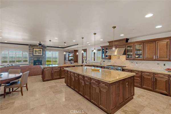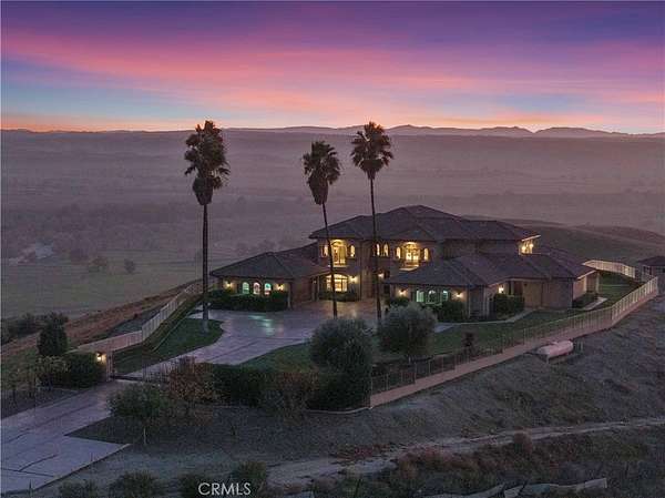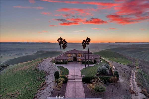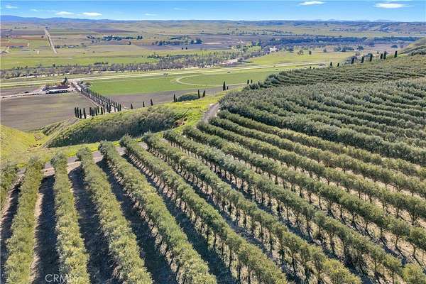 Welcome to Five Arches Ranch, an extraordinary 639.5+- acre estate in the heart of California's Central Coast, where wide-open space, wine country living, and true ranch luxury come together. Spanning three legal parcels, this legacy property offers a rare combination of agricultural production, equestrian facilities, residential comfort, and exceptional privacy. At the center of the ranch sits a beautifully maintained 7,772+- SF main residence (7BD/6.5BA), built in 2008 and positioned at the end of a gated, cypress tree-lined private driveway. Designed to frame panoramic ridgeline and vineyard views, the home features large windows, an attached guest quarters with a kitchenette, two 2-car garages, a resort-style 40' x 20' pool with automatic cover, a built-in spa, an outdoor kitchen with a pizza oven, and 745+- feet of glass fencing surrounding the main compound. The chef's kitchen is complete with high-end Dacor stainless steel appliances, a breakfast nook, sprawling granite counters, a walk-in pantry, and a climate-controlled wine cellar. The living room and loft benefit from soaring ceilings, natural light through large arched windows, and tasteful tile floors. Five Arches Ranch is deeply rooted in equestrian tradition. The extensive horse facilities include an impressive 60' x 50' horse barn with 11 stalls, an attached trainer's apartment, 800 linear feet of fenced turnout, and a 40-foot radius hot walker. Additional structures include a 925+- SF hay barn, a 4,000+- SF equipment shed with a fuel station, a ranch office, two ranch houses, and a historic 1935 barn, seven buildings in total supporting full ranch operations. Agricultural assets include 12+- acres of producing olive trees, 23+- acres of Syrah (1998), 10+- acres of Cabernet Sauvignon (2017), and extensive irrigated ground (264.62+- acres). Four high-capacity wells support farming, equestrian use, and future expansion. The ranch also offers grazing land, a second elevated plateau ideal for a future home site, and nearly 2 miles of Highway 46 frontage for accessibility. A property of this scale, versatility, and beauty is exceptionally rare in Paso Robles wine country. Five Arches Ranch offers land, luxury, privacy, water, and income potential, all in one extraordinary package.