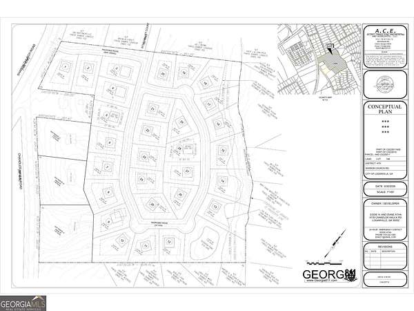 Est $11,718/mo21.17 acres in the city of Loganville, zoned R-22. Approx 250 ft of road frontage on Sharon Church Rd and has high traffic count. Proposed site plan showing 29 lots attached.