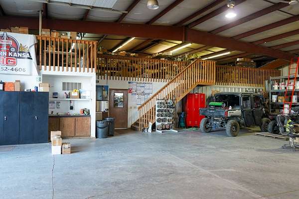 This is a rare opportunity to acquire a highly functional commercial/industrial facility with expansion potential in Sharon Springs, Kansas. Situated on 4.53± acres, this property includes a well maintained steel-frame main facility along with three additional commercial lots, offering immediate operational use, plus long term growth flexibility. In addition this property features maintained front landscaping with a sprinkler system and excellent frontage along Highway 40. Main Facility - 7,800 SF , 1,800 SF Office Space - Three private offices - Two bathrooms - Updated interior finishes - Professional reception and workspace layout 6,000 SF Shop / Warehouse - In-floor radiant heat throughout shop slab - Two overhead doors - Ideal for equipment storage, service operations, fabrication, or distribution Additional Included Lots - 1.23± Acre Vacant Commercial Lot - 0.50± Acre Vacant Commercial Lot - 0.38± Acre Car Wash Lot