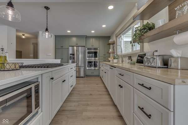 - Cooktop, Dishwasher, Double Oven, Dryer, Garbage Disposer, Gas Cooktop, Microwave, Refrigerator, Softener Water, Washer
