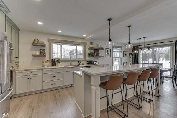 Welcome home to this move-in-ready two-story home with a finished basement, sitting on 5 acres. The beautifully updated kitchen features abundant cabinetry, ample natural light, a large center island, quartz and butcher block countertops, and a double wall oven-all seamlessly integrated into an open-concept main level ideal for both everyday living and entertaining. Relax with family and friends or enjoy cozy evenings by the fireplace. The newly remodeled primary suite is a true retreat, offering a walk-in shower, soaking tub, elegant double-sink vanity, stylish tile flooring, his/hers closet, and oversized laundry room. The finished basement provides versatile space for a recreation room, home gym, play area, or additional storage. Outside, the property continues to impress with a spacious 35' x 55' barn featuring concrete floors and electricity, along with a detached two-car garage, also with a concrete floor-perfect for vehicles, equipment, or hobbies. This exceptional property combines comfort, functionality, and space both inside and out.