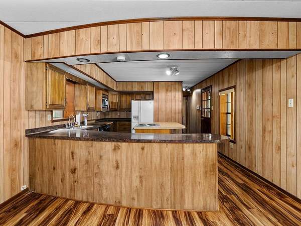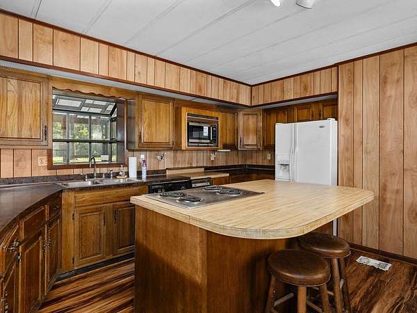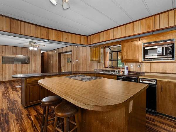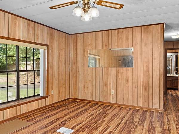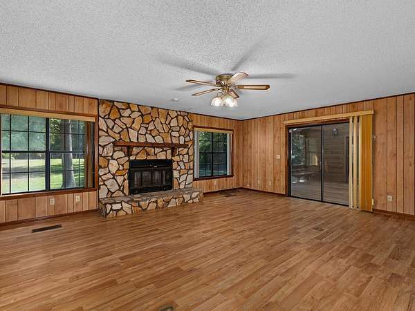 Est $1,158/moHome on unrestricted 3 acres, in very close proximity to Huxley Bay Marina boat launch. The main home has 4 bedrooms and 2 full baths. Fenced in area for pets in front yard, the garage has a large kitchen, large room, and a one car garage space. Property also comes with a detached two car carport. Bring your fishing poles!
