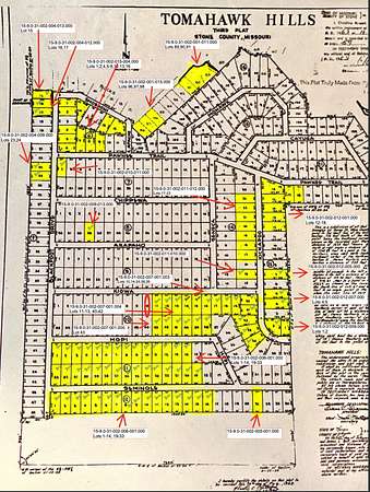 Rare opportunity to acquire multiple parcels in the established Tomahawk Hills community near retro Fish N' Fun Resort! Parcels can be purchased individually or combined to create a custom homesite. Ideal for investors or buyers seeking a private lake retreat.Enjoy lake living with immediate access to resort amenities (slips, rentals) and King's River. Explore 8,000-acre Piney Creek Wilderness; reward yourself with Pizza Hut boat dock delivery, and find coffee and gear at the combined space of Table Rock Trading / Williams Ski Bros. Conveniently located 1 hour from Branson/Eureka Springs; 1.5 hours from Springfield.Residential zoning with no HOA. County is strict on permitting. Campers/RVs cannot be used for habitation; permanent construction required. Utilities are well/septic (no municipal); Carrol County Electric provides power. Buyer responsible for all closing costs, including those typically paid by seller (contact agent for exclusions). Buyer due diligence on lot lines/utilities.