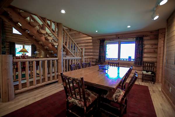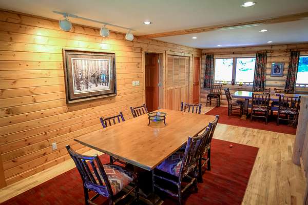 The concept for this lodge was to be able to cater to large groups of people demanding privacy and a first class experience. The main lodge has an open floor plan with high quality craftsmanship and attention to detail. Three separate matching cabins with the same quality craftsmanship offer multiple lock-off options to accommodate several families and guests. A fifth cabin, the cook house, has sleeping quarters to accommodate a full time chef. This cabin also features indoor and outdoor prep areas and seating locations allowing for large parties to take advantage of the weather and enjoy the outdoors.