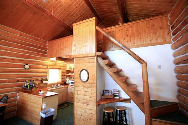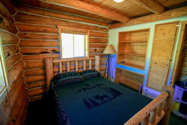 A heated log building was built for storing snowmobiles. It also offers a heated floor with drains. In addition, a meat cooler and processing area is also located in the building.