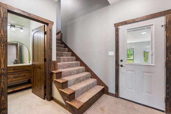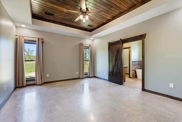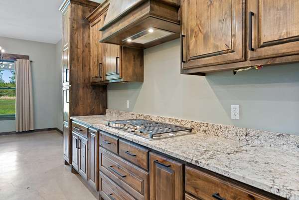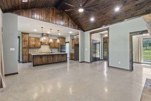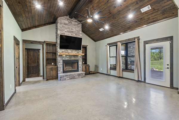 This beautiful custom home sits on just over 17 acres of land. This home is approx 2800 sq ft, and features 4 bedrooms, 2.5 bathrooms, and an office. Inside it has a wonderful open floor plan, with a beautiful wood burning fireplace in the living room. The kitchen has a gas cooktop, double ovens, granite countertops, an oversized island, and a large pantry. The primary suite has a walk in closet that you can access off the bath or by walking through the laundry area. The closet also has a center island wardrobe. Downstairs there's 3 bedrooms, and a dedicated office space. Upstairs there is a bonus room. Outside you will find a spacious back porch with another wood burning fireplace. In the back yard there is a fenced in area, with a building that was used as a dog kennel. This home is wired for a generator, has spray foam insulation, a gas tankless hot water heater, and gas heat.
