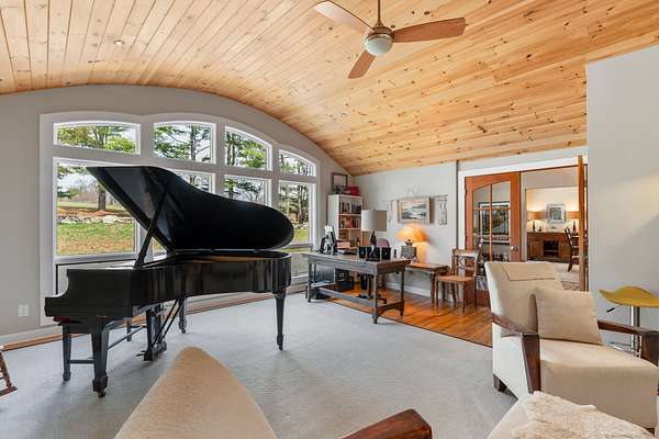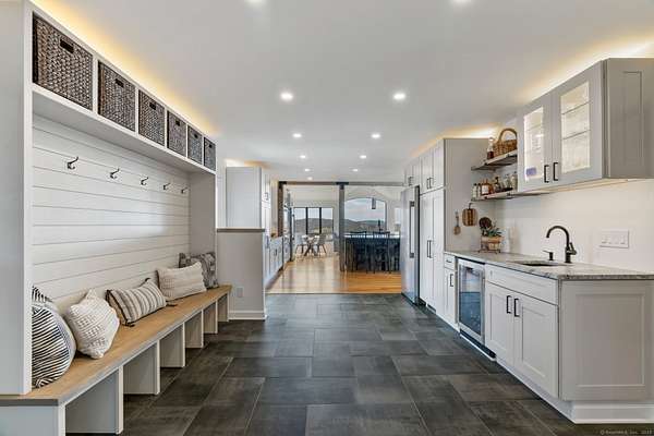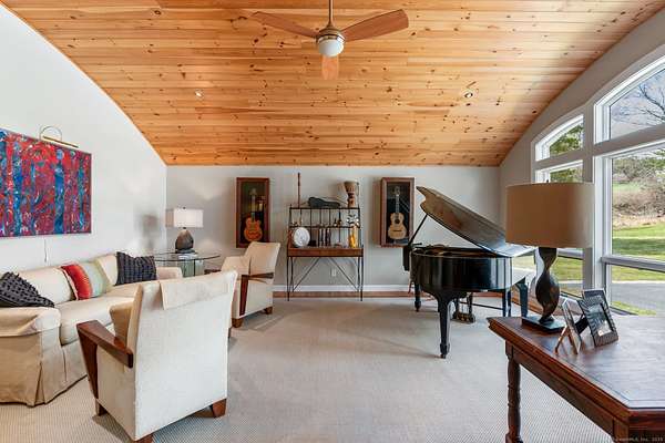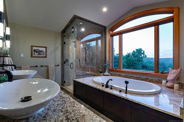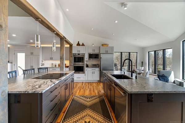 Experience the epitome of modern luxury in this expansive contemporary home with captivating long-range southerly VIEWS! This architectural masterpiece is designed with an open plan that seamlessly integrates living, dining and kitchen spaces, creating an environment perfect for sophisticated entertaining and comfortable daily living. Culinary adventures await in the state-of-the-art kitchen, equipped with s/steel appliances, sleek cabinetry, double islands and ample counter space - perfectly positioned to capture the views. The heart of the home is the great room with vaulted ceilings and large windows which flood the room with natural light. Adjacent to this area is the formal dining room and across the foyer music enthusiasts will delight in the dedicated music room, where melodies can soar freely towards the barreled ceiling! Throughout the home you'll find it has been beautifully appointed with hardwood floors, high-end finishes & meticulous attention to detail, underpinning its contemporary elegance. Main level primary suite and several luxuriously appointed bedrooms/bathrooms along with a separate guest wing ensure comfort for all. Retreat to the spacious recreation area or media room for the ultimate cinematic experience. For those who value fitness & wellness, there is a gym and dedicated yoga loft. Enjoy the nearby Tennis Court & skating pond or the Sherman town beach for access to Candlewood Lake. The home also features a 4-car garage with space to house a boat.