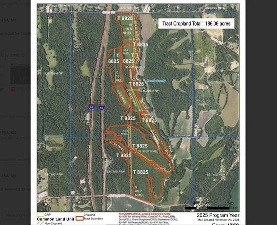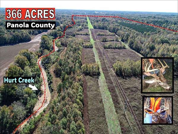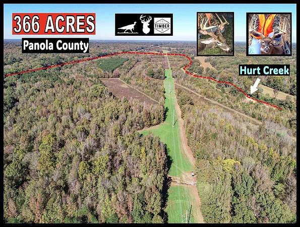 Est $9,883/moHunting Land with Income! The Hurt Creek 366 is a contiguous tract spanning an entire mile & a half between Shiloh & McNeely Roads. The creek runs the whole eastern boundary with nearly 2 miles of frontage, providing water for wildlife & a wide creek bed to explore & enjoy. Level topography & an outstanding road system make it easy to access all of the property. The power line creates a seemingly endless huge food plot, & there are other smaller plots scattered around. 186 ACRES are in CRP with a $20,400 annual payment for the next 14 years. Water, electricity, & fiber internet are available.