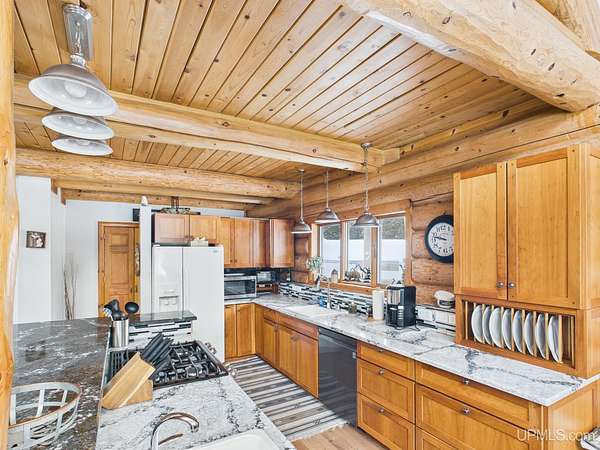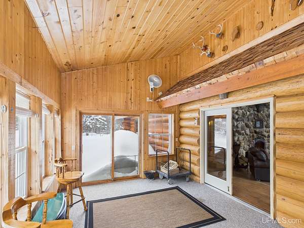 Est $3,614/moThis Beautiful Koski Log Home located in the center of Pictured Rocks National Lakeshore sets on 20 acres of wooded land. Man level features quartz countertops, open concept with cathedral ceilings featuring a beautiful stone fireplace, in the center of the home, a sun room and a master bedroom with full bath. 2nd floor features a loft and bedroom with full bath. The walkout basement also features a fireplace with bunks for more sleeping, gameroom, a nonconforming bedroom, laundry and storage rooms. Enjoy nature on the 12' wrap around deck. Two 30x40 garages one with water, insulated and a wood stove for heat, a lean-to. Home is currently a vacation rental.