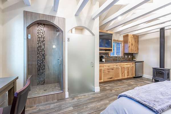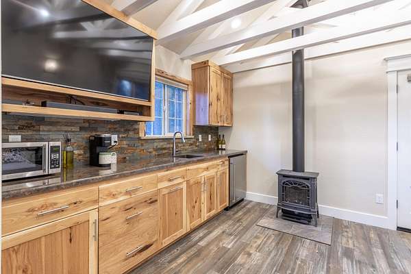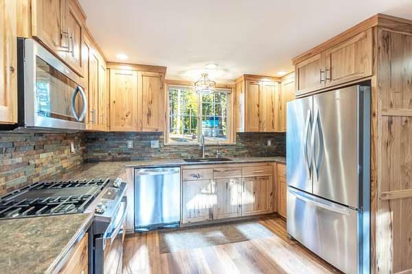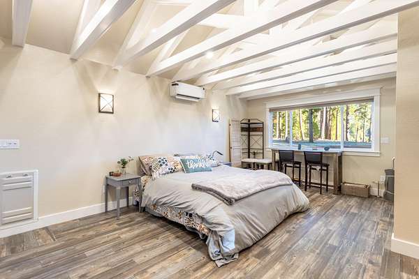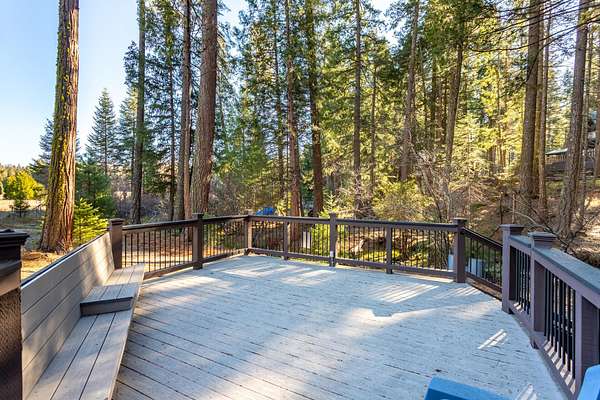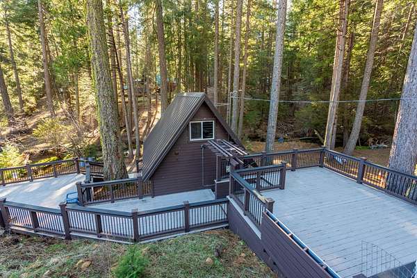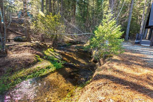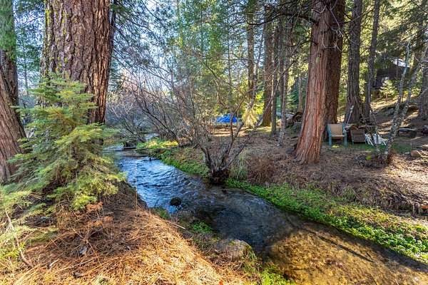 Breathtaking views of the Mt. Lassen Peak and Cascade Range, a serene meadow, and a year-round creek grace this private wooded retreat! Spanning three separate parcels, this property offers endless possibilities. Enjoy a massive 36'X40'' Maaco shop with three roll-up doors (1 large enough for a Motorhome and includes electric hook-ups), perfect for projects or storage. The main cabin, built in 2002, impresses with stunning Mountain and Creek views, aluminum siding, a metal roof, Trex decking, cathedral open-beam ceilings, a loft with built-in storage, and a kitchen adorned with granite sink and custom Knotty Hickory Cabinets. The woodstove offers cozy ambiance while the mini split(s) and propane heater offers convenience and comfort. The charming guest cabin features a granite sink, custom Knotty Hickory Cabinets, a tile shower, luxury vinyl flooring, mini split, propane heater, and a covered patio. The 520 SQ. Ft. creekfront studio cabin, built in 1968, has been recently updated and invites relaxation with a stunning multi-level deck, wood siding, granite sink and custom cabinets, high vaulted ceilings, and a soothing creek just steps away. With RV Hookups (electric, water and septic), two wells, two septic's, Tankless water heaters, mini splits for energy efficient comfort, an On-Demand backup Generac generator, hiking trails, fenced and cross-fenced, the property showcases plenty of space to build your dream home. This is the ultimate mountain sanctuary. Furnishings to remain.