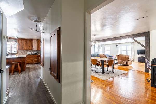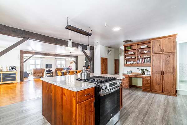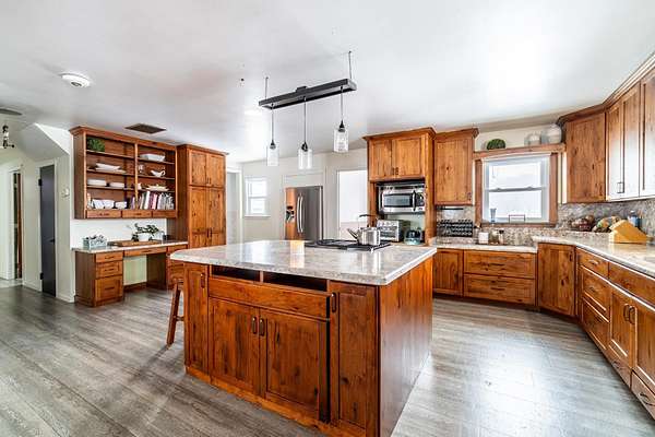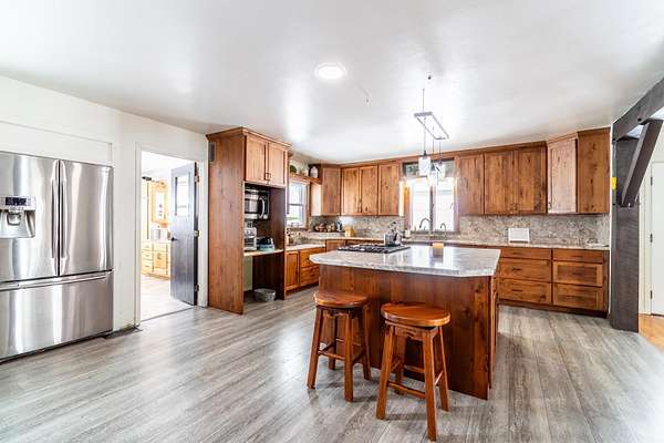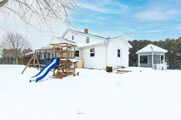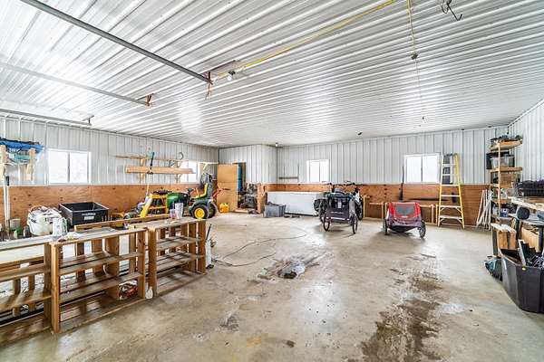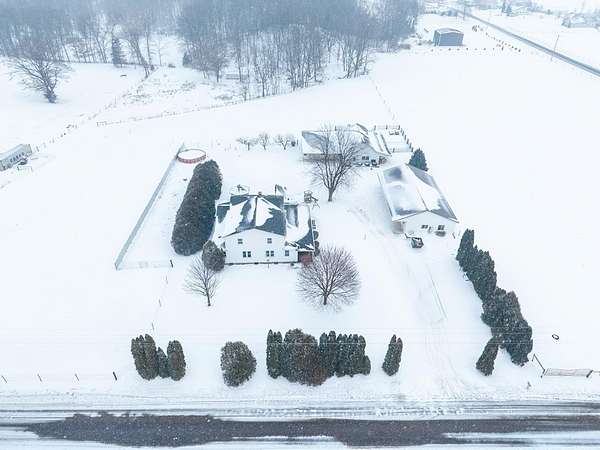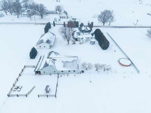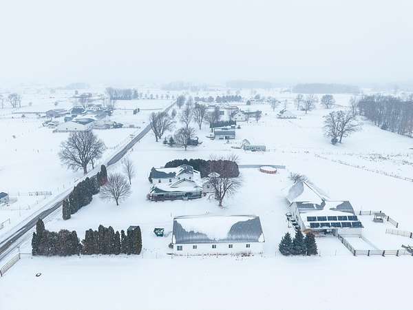 Spacious 6-bedroom, 2-full-bath country home set on 4.06 acres in Shipshewana with nearly 3 acres of open pasture. The home offers hardwood floors, custom cabinetry, stainless steel appliances, generously sized bedrooms, and a full basement with a dedicated canning area plus washer and dryer. Outbuildings include a 28x60 garage with running water, restroom, and finished workspace, along with a barn featuring additional finished space and a 28x42 livestock area with three box stalls. Property is powered by 10 (550W) solar panels with generator and lithium battery backup for efficient, self-reliant living. Relax on the large front porch or gazebo and enjoy the usable acreage in District 46-1--well suited for farming, livestock, and e-bike riding.