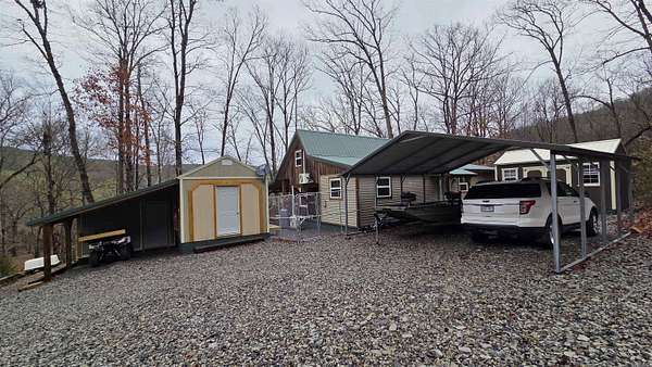 Your dream lakefront retreat on stunning Greers Ferry Lake is here! This newly remodeled & constructed 2-bedroom home is move-in ready and offers the ultimate private getaway. Relax on the expansive deck with porch swing, enjoying panoramic views over the clear, renowned waters of Greers Ferry Lake—perfect for world-class fishing and boating. Direct shoreline access lets you pull right up to unload your day's catfish catch or refill the cooler—effortless lake living at its best. New metal roof, siding, windows, doors, flooring, appliances, & more plus all-new HVAC systems. Cozy modern interior with office space just at the top of the stairs. On approx. 2.40 acres of unrestricted, private land, ideal for hunting (deer & fish in the pics harvested right here from the property & lake! Ample storage: 2-car carport + 3 large outbuildings (one fully heated/cooled, others insulated with power) to keep boats, ATVs, and lake toys dry and secure. Property is gated too! Turn-key perfection blending modern upgrades, prime lake location, and endless outdoor adventures all steps away. White line is at the waters edge! Call today for your tour!