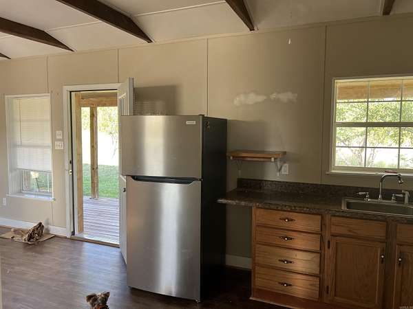 Escape to the peace and privacy of the countryside with this charming 1 bed, 1 bath cabin situated on approximately 10 beautiful acres of mostly open pasture. Built in 2013, this cozy 540 sq ft cabin offers a simple and comfortable retreat surrounded by scenic views and abundant wildlife. Enjoy your morning coffee on the covered front porch while overlooking rolling pasture and mature trees. Inside, the cabin features an open living and kitchen area with rustic touches, exposed beams, and plenty of natural light. The property’s western boundary is Pee Dee Creek, which flows directly into Greers Ferry Lake. When water levels are up, the creek allows for direct access to the lake—perfect for kayaking, fishing, or exploring the water right from your property. With a mix of open land and wooded creek frontage, this property is ideal for a weekend getaway, hunting cabin, short-term rental opportunity, or peaceful full-time living. Plenty of room for additional structures, animals, or expanding your homestead. If you’re looking for a quiet slice of Arkansas with water access and wide-open space, this unique property is a must see.