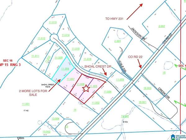FROM HWY 231 TURN ON CO RD 22 GO APPROXIMATELY 3 MILES TO SHOAL CREST DR TURN RIGHT THIS PROPERTY IS ON THE LEFT BEGINNING BEHIND FIRST HOME.