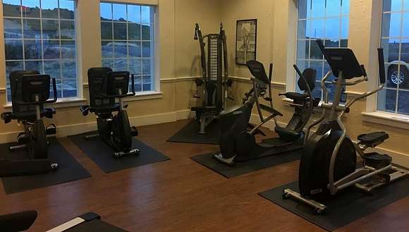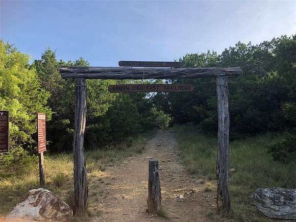 This two acre lot has a wide expanse of road frontage and several choices for house placement. A variety of large mature trees pepper this property giving it shade, trails, privacy, and charm. The backside of this lot could be a fun place to create your own trails and private oasis looking into the canyon. The starts are brighter out here at The Hills! In the meantime, enjoy the sights and sounds of nature all around including deer, roadrunner, turkeys, owls, and a myriad of other Texas birds. You will also enjoy the use of the upscale amenities including the gorgeous community clubhouse infinity swimming pool, community lake cabin, boat dock, boat storage, and watercraft launch area. Spacious fitness center is located inside the community clubhouse with commercial grade equipment, TV, and many large windows to let in the sunshine and beauty all around. Cooler weather is here so it is a great time to come on out! The sign is in front of a path cut out to walk towards the back of lot.