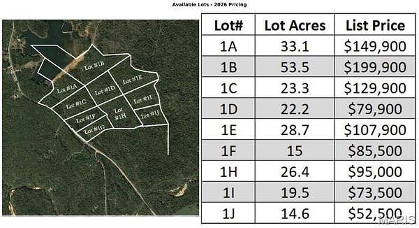 Discover the beauty and freedom of country living with 10 available lots in Kingston Lake Estates, located in scenic Washington County, Missouri. These unique parcels offer a stunning mix of natural topography, including gently rolling terrain, level building areas, wooded hillsides, and peaceful valleys. Mature trees provide privacy and shade, while a picturesque creek winds through portions of the property, enhancing the natural charm of the landscape. With abundant wildlife, beautiful forested surroundings, and multiple potential building sites across the available parcels, Kingston Lake Estates is an ideal setting for those seeking privacy, nature, and outdoor adventure. Outdoor enthusiasts will love the access to a massive private lake, perfect for fishing, kayaking, or simply enjoying the tranquil waterfront setting (sorry, no motor boats or jetskis). Whether you're planning a full-time residence, weekend retreat, or recreational getaway, these lots offer the space and flexibility to bring your vision to life. This is a rare opportunity to secure land in one of Washington County’s most naturally beautiful areas with easy access right off Hwy 47. There are Protective Covenants on the land to maintain quality, and homes on these lots will all be built by the same master-quality builder. Lots can be purchased individually or in any combination. Choose your lot and start building your escape today.