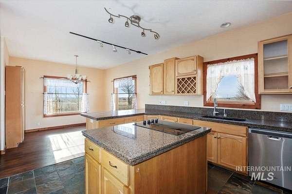 Enjoy peaceful country living with breathtaking valley views on this beautiful 9-acre property with valuable water shares. This 3-bedroom, 2-bath home is filled with natural light and offers a functional, open layout ideal for everyday living and entertaining. The kitchen features granite countertops and generous cooking and prep space, perfect for those who love to cook. Unfinished basement plumbed for an additional bathroom gives endless possibilities for living expansion! Step outside to the back porch with pergola and hot tub hookups-an ideal spot to relax and take in the views. The property offers abundant storage, room for animals, and space to grow with a garden area already established with raspberries and a peach tree. A rare opportunity to enjoy space, views, and country charm while still having the comforts of home.