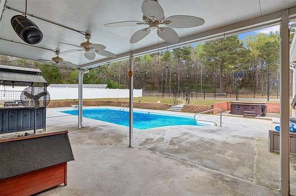 Est $1,920/moRare 2.5-acre property with pool, tennis-multi-sport court, solar panels, and exceptional garage space. This well-maintained home offers spacious living areas, tall ceilings, abundant natural light, granite countertops, stainless appliances, center island, fireplace, built-ins, and flexible space for bedrooms, office, or hobbies. The primary suite features a soaking tub, separate shower, and generous closet space. Outside, enjoy a covered patio, sparkling pool, and room to relax or entertain. The extra-large 616 sq ft attached 2-car garage is perfect for full-size trucks, and the detached 2-car garage-shop adds even more storage and workspace. A unique property with acreage, amenities, and versatility all in one.