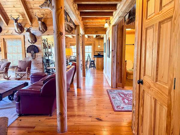AMAZING HUNTING/RECREATIONAL PROPERTY WITH LOG CABIN. It really doesn't get much better than this: 711 acres of first-class hunting and recreational land with nearly two miles of frontage on the Chickasawhay River. Located in the Desoto Community of Clarke County, CL711 has deeded access from CR695. It is five miles northeast of Shubuta, MS and five miles southeast of Quitman, MS. Looking for a place to hold family gatherings and hunts? Want to float the river? Maybe you would like a private weekend getaway spot where you really CAN get away from it all. Or perhaps you need a place that can double as a family retreat and a place to host clients. CL711 offers the chance to do all this and more. This location is quiet, peaceful, and provides the feeling of being in a remote setting while still being close enough to civilization to quickly get some groceries and gas. LOG CABIN HOME. This residence is a well-built, two-story, 2,174 square foot log home located on a bluff overlooking the scenic Chickasawhay River. On the main level are a large great room, dining room, kitchen, laundry room, a half bath, and the primary bedroom with an ensuite bathroom. The second level has two bedrooms and two bathrooms with a balcony open to the first floor. The home is heated and cooled by two central heat and air conditioning systems. The home's exterior has a 352-square-foot covered porch in front of the house. The back of the house features the perfect place to start your day with a hot cup of coffee or to end your day with an ice-cold beverage: a 612-square-foot open, wooden deck with a beautiful view of the river. OUTBUILDINGS. SHOP/SHED - Built on a concrete slab, this building has a 1,185-square-foot enclosed shop area and a covered 579-square-foot open air shed area. The shop has wood siding and a metal roof. BARN WITH SHEDS - The frame construction barn has lean-to sheds on each side; one is 192 square feet and the other is 233 square feet. Both sheds have concrete floors as does the 323-square-foot portion of the main barn. HORSE STALLS - Perfect for horse lovers, this area includes two horse stalls with dirt floors (235 square feet). OUTDOOR FEATURES. With 711 acres, this property lives large and provides plenty of privacy and lots of opportunities to enjoy the outdoors. Let's start with 1.75 miles of Chickasawhay River frontage. The river makes up the entire western boundary of the tract. A whole day of fun activities such as kayaking, floating, or fishing can be had simply by starting at the north end of the property and going to the south end. Beautiful sandbars offer the perfect spots for sunbathing or picnicking. Coonipper Creek briefly flows across the southeast corner of the property before joining the Chickasawhay. Situated in a prime region of South Mississippi for hunting, CL711 will not disappoint the avid hunter. Trophy whitetail bucks and turkeys are plentiful here (see a few of the photos attached to this listing) as are all the typical small game animals. In addition, the property also has two duck ponds, one of which is a controllable duck hole. Duck holes are created using water control structures to manage water levels, create ideal vegetation for food, and attract waterfowl. These systems allow for moist-soil management, such as drawing down water in spring to germinate plants and flooding in fall for hunting. Internal roads offer great access throughout the property providing opportunities for exploring on foot, riding four-wheelers or side-by-sides or horses. TIMBER INVESTMENT. As if all these features weren't enough, CL711 boasts well-managed longleaf pine plantations ranging in age from newly planted to 15 years as well as well-managed mature loblolly pine plantations. Walley Forestry Consultants can provide the new owners with direction on managing these plantations. NEARBY ATTRACTIONS. Dunn's Falls Park northwest of Enterprise, MS features a 65-foot waterfall that was once used as a power source for a gristmill. Historic Carroll-Richardson Gristmill is open for tours. The park is a natural wildlife refuge featuring a picnic area with barbecue grills, a gristmill pond, hiking, and swimming areas. At Archusa Creek Reservoir south of Quitman, MS, activities are centered around the 450-acre lake stocked with bass, catfish, perch, and bream. Swimming, boating and water skiing are among some of the most popular activities at Archusa Creek and the park also features an 18-hole championship disc golf course as well as a one-half mile walking trail. Clarkco State Park northeast of Quitman, MS has been a favorite Mississippi recreation spot since 1938. Situated on 815 acres of gently rolling woodlands, Clarkco offers camping, cabin rentals, and water sports in a convenient yet unspoiled location, providing the perfect afternoon or weekend getaway retreat LOCATION. In addition to the previously mentioned towns, CL711 is an easy drive from the following cities: Meridian, MS - 29 miles, Laurel, MS - 42 miles, Hattiesburg, MS - 79 miles, Jackson, MS - 120 miles, Gulfport, MS - 151 miles, Mobile, AL - 100 miles, Birmingham, AL - 176 miles, New Orleans, LA - 188 miles.