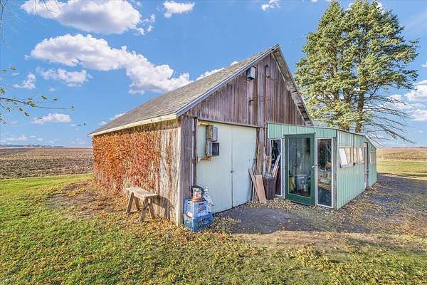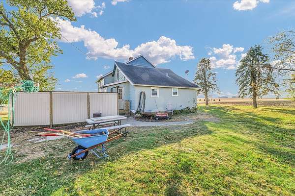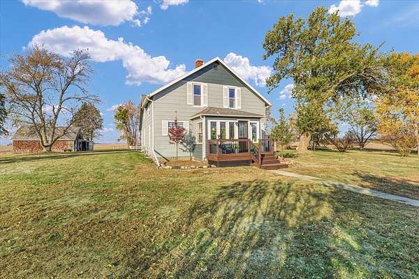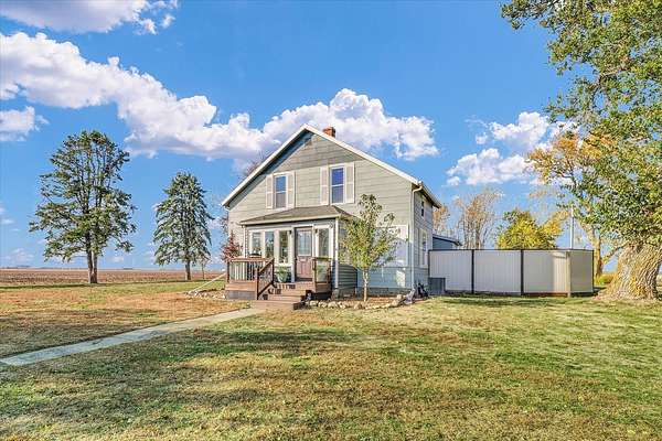 Discover the charm and quiet country setting of this classic 1925 farmhouse nestled on 2 scenic acres between Philo and Sidney in the desirable Unit 7 School District. Surrounded by open fields and mature trees, with easy access to town. Offering 1,506 square feet of living space, the home features 3 bedrooms and 2.5 bathrooms with a flexible layout. Step onto the brand-new front deck and into the enclosed front porch, perfect for morning coffee or extra storage. Inside, you'll find a cozy living room and formal dining room with hardwood flooring that was refinished this summer, two main-level bedrooms connected by a convenient half bath, a spacious kitchen with a vaulted ceiling, and a laundry room with a full bath including a walk-in shower. Upstairs, a media/family room (TV stays) and a private bedroom suite await, complete with an updated full bath featuring a walk-in shower, soaking tub, and ample closet space. Outside, enjoy the simple pleasures of country life with apple and cherry trees, blackberry bushes, and even wild asparagus growing right on the property. The barn, with its solid foundation, offers endless potential for storage, hobby farming, or future renovation. Additional highlights include a newer water heater (approx. 2 years old), a new garage roof, freshly repainted exterior, refinished hardwood floors (summer 2025), all interior walls resurfaced with drywall and repainted, and a septic system serviced and pumped in May 2025 by Berg Tank. This property is a rare opportunity for peaceful rural living with room to grow.