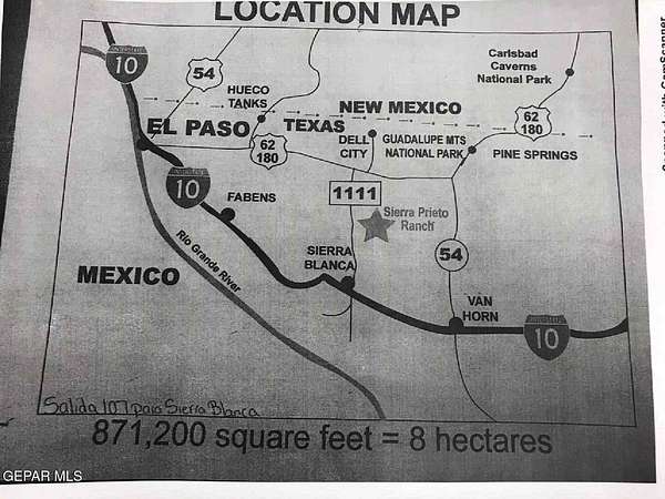 Est $182/moEscape to wide-open West Texas! This 20-acre parcel in the Sierra Prieto Subdivision offers endless potential for off-grid living, homesteading, hunting, camping, or stargazing. Located about 30 minutes from Sierra Blanca, this raw land has no utilities or survey-a new survey will be needed to determine exact boundaries. Perfect for those seeking space, freedom, and breathtaking desert views. This listing is subject to errors, omissions, information provided is deemed reliable but is not guaranteed and should be independently verified